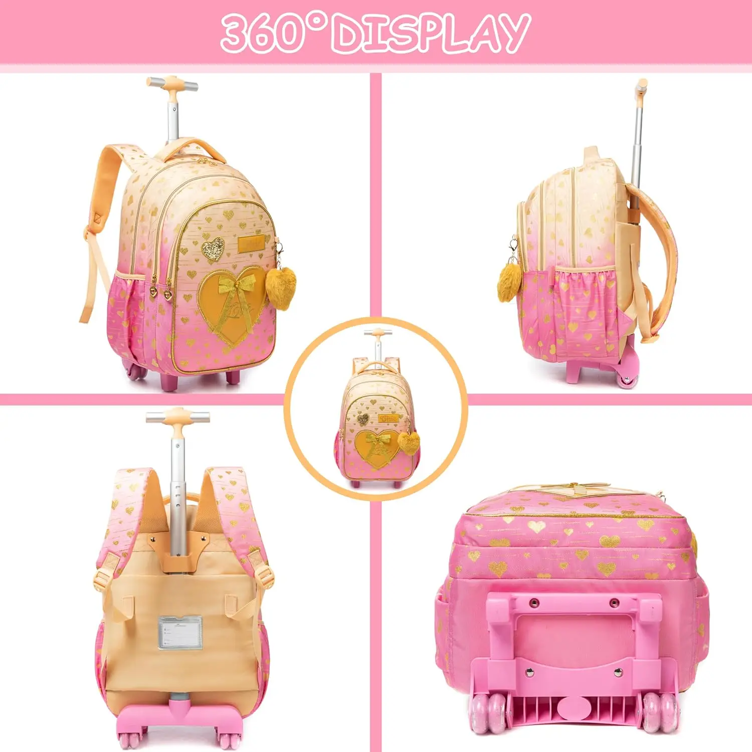 Sac à dos roulant pour enfants, sacs à dos à roulettes pour élèves du primaire, bagages de voyage pour enfants, valise à main pour filles de 8 à 10 ans