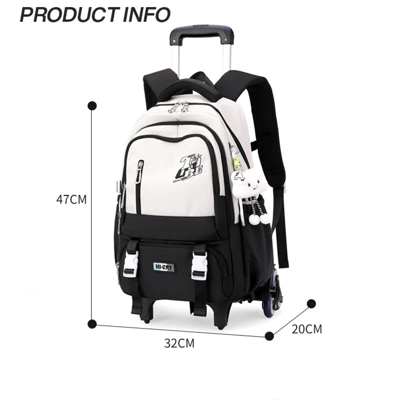 Sac à dos scolaire à roulettes pour enfants, sac à dos à roulettes pour filles et garçons, sac à roulettes pour étudiants, chariot de voyage, 2/6