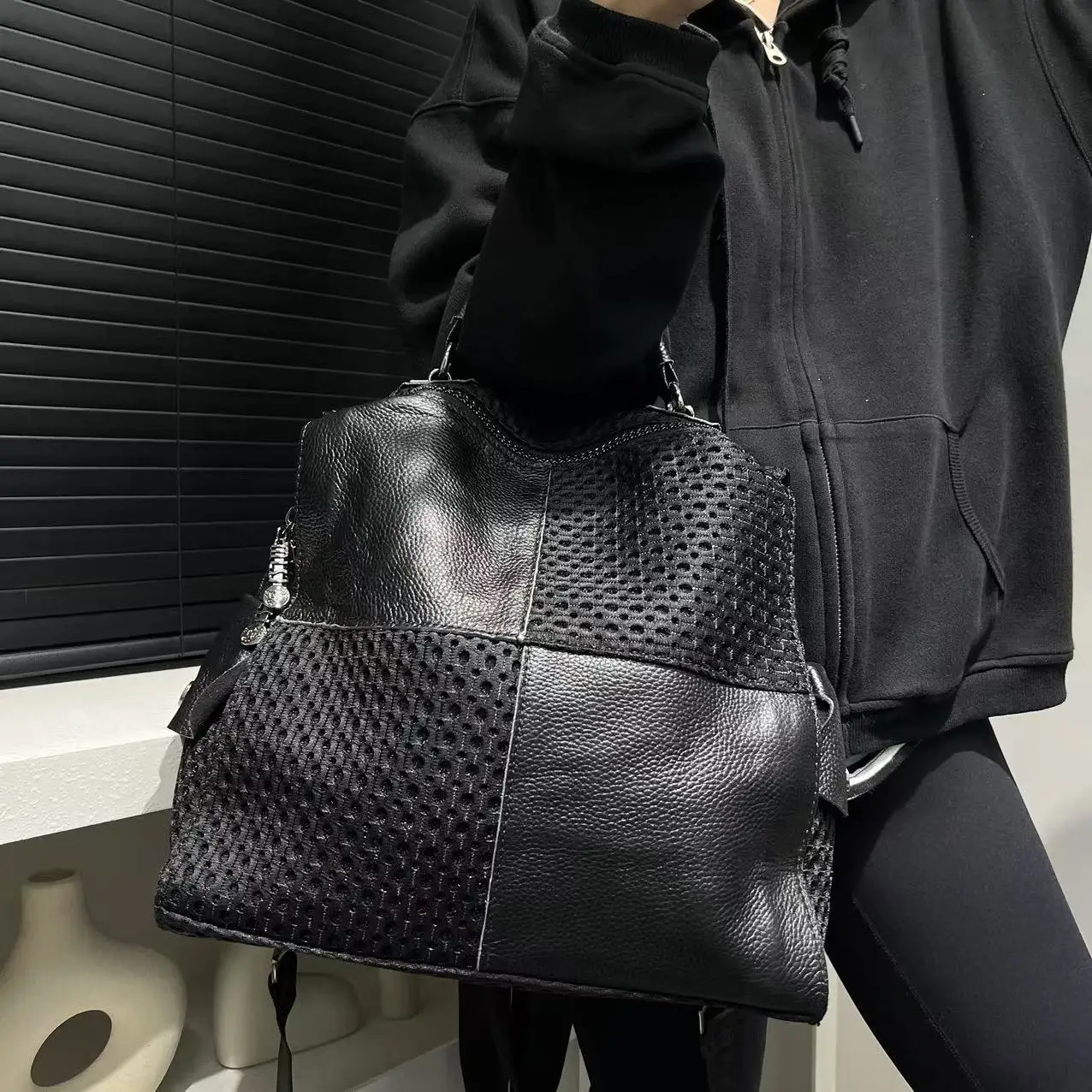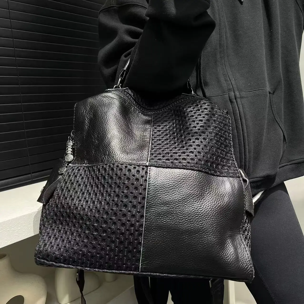 Sac à main chic à panneaux en maille pour femme – Sac à bandoulière polyvalent avec sangle amovible, parfait pour les sorties décontractées et les vacances