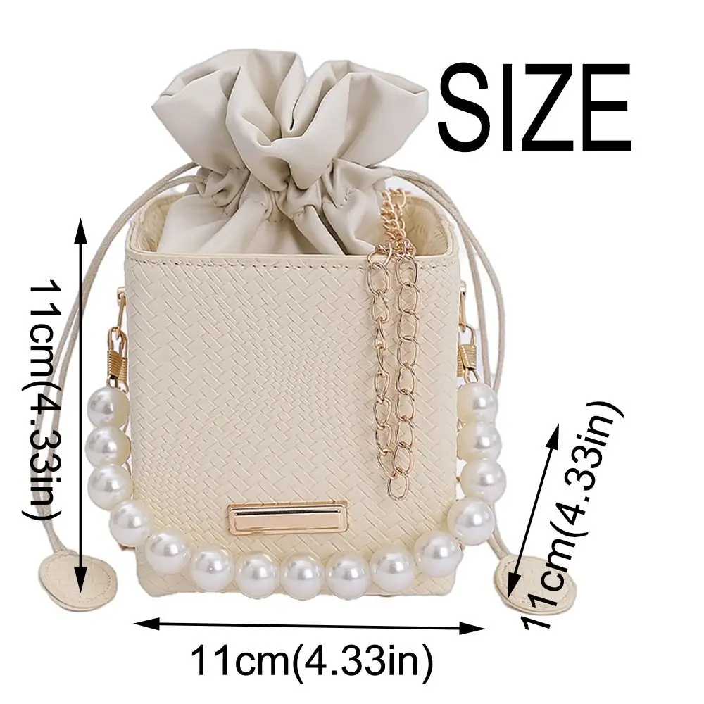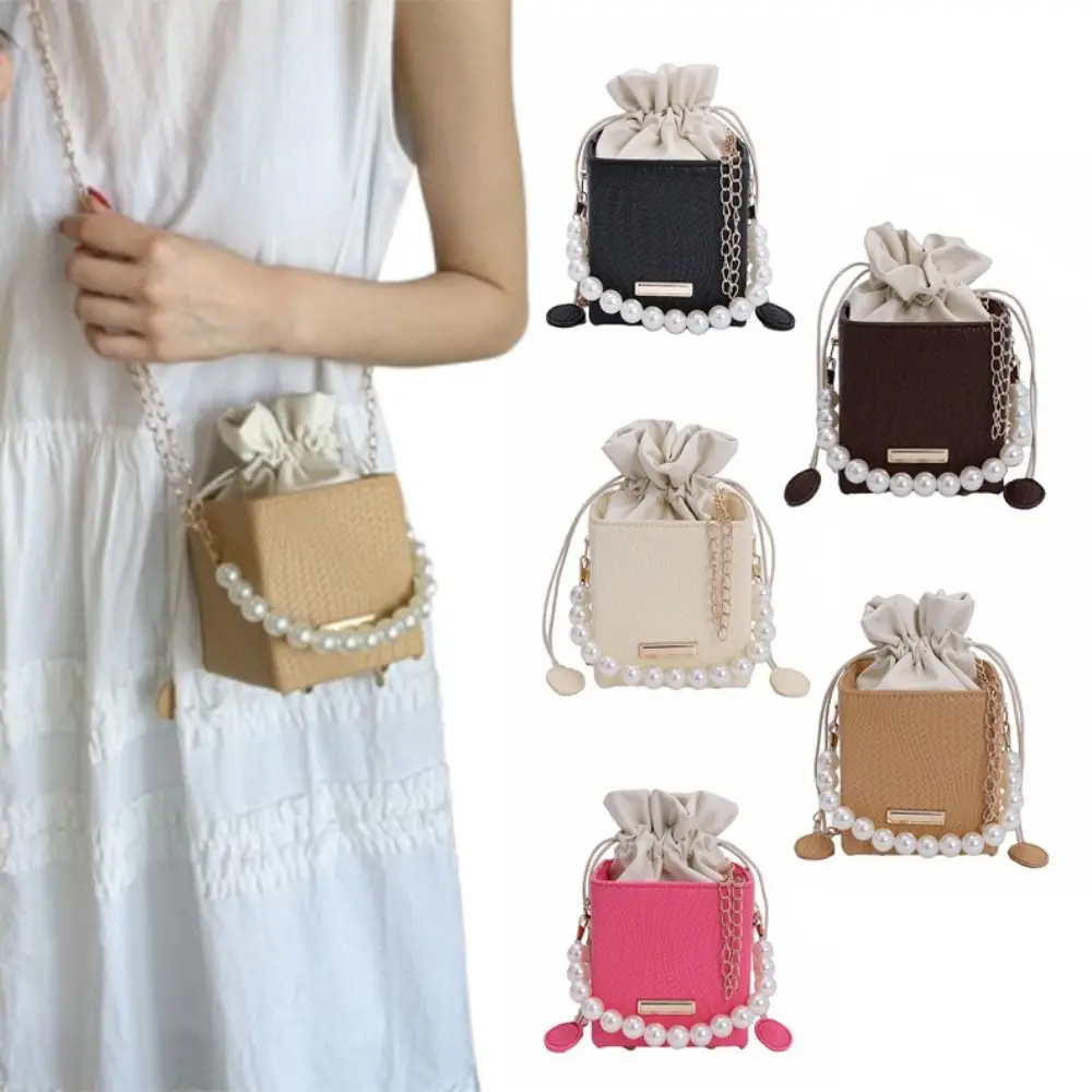 Sac à main Chic et tendance pour femmes, sac à bandoulière léger et élégant avec cordon de serrage, sangle en chaîne de perles, sac seau pour voyage en plein air