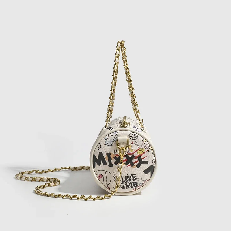 Sac à Main Cylindrique Transfrontalier avec Chaîne Graffiti pour Femme, Sacoche à Bandoulière, Nouvelle Collection