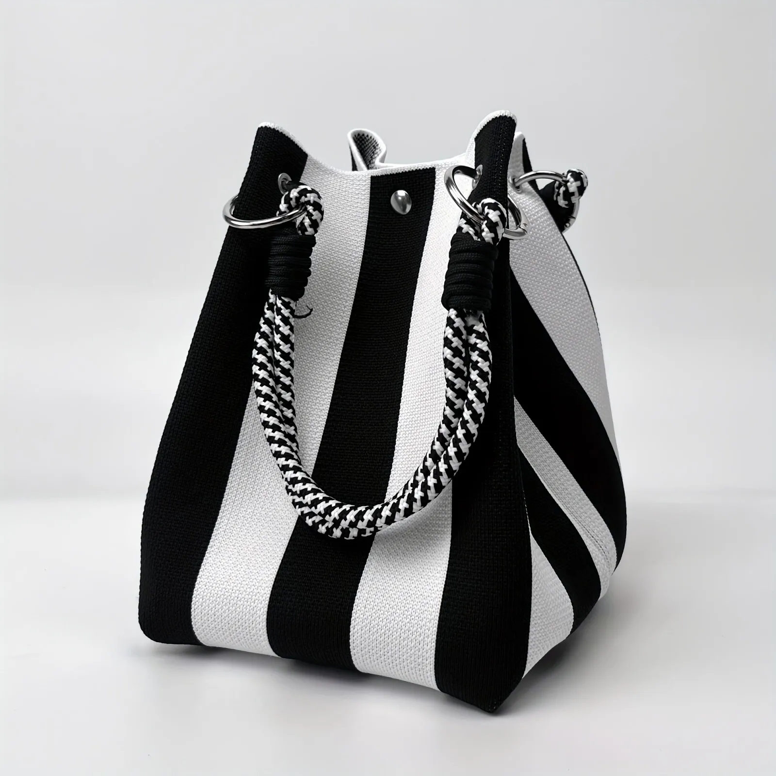 Sac à main décontracté pour femmes léger jaune orange rouge bleu rayures imprimé tricot petits sacs seau pour les femmes |