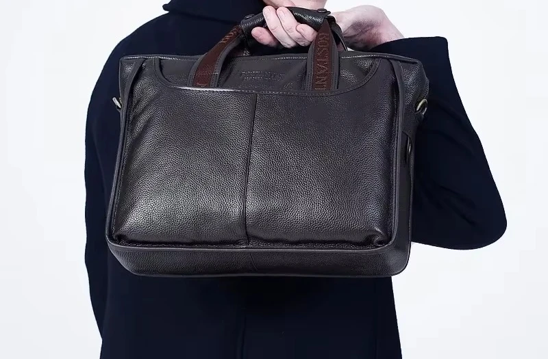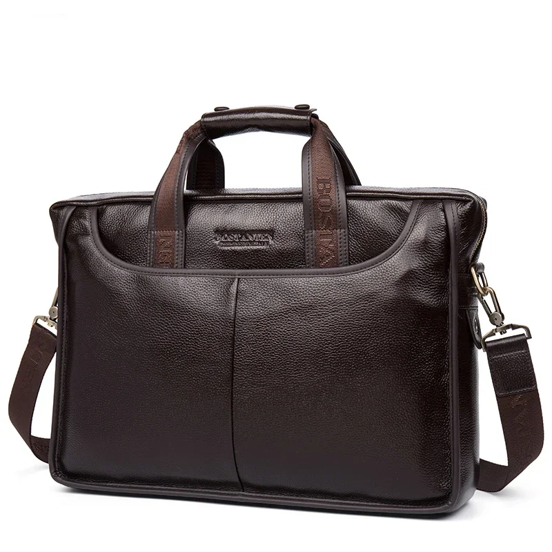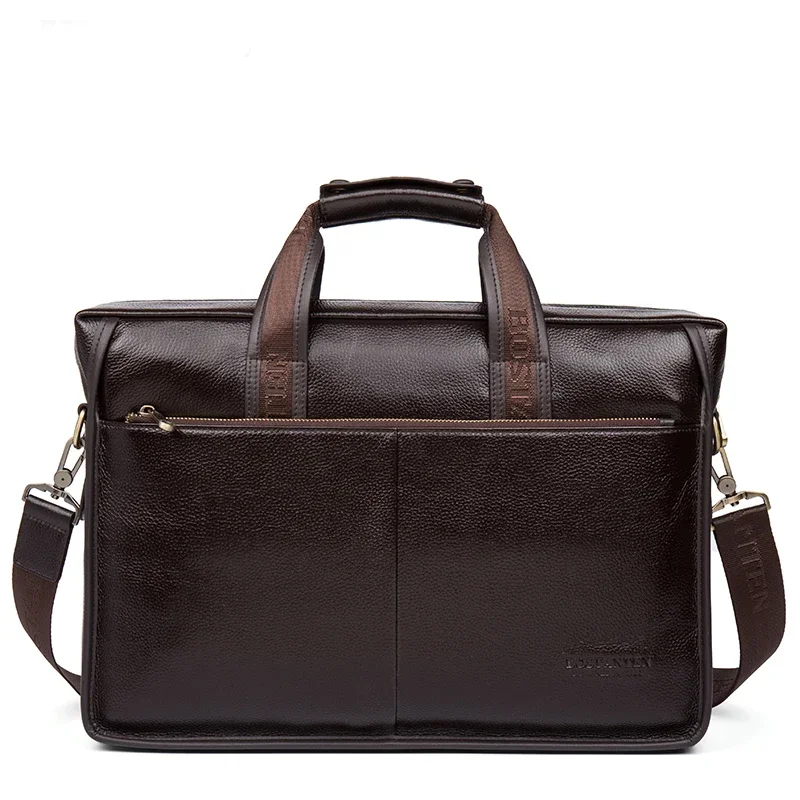Sac à main en cuir de vache 100% véritable pour hommes, sacoche à bandoulière, fourre-tout, porte-documents pour ordinateur portable, 14 pouces