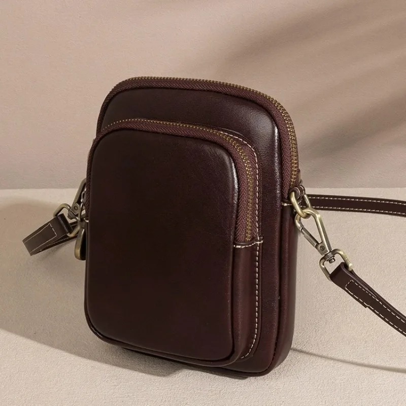 Sac à main en cuir véritable pour femme, petit sac tendance, cuir de vachette tanné végétal simple, sac pour téléphone portable, sac à bandoulière initié, 2024 |
