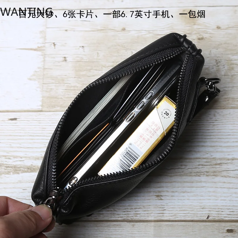 Sac à main en cuir véritable pour hommes, en cuir souple, rétro, décontracté, couche supérieure en peau de vache, Long portefeuille avec fermeture éclair de grande capacité, sac pour téléphone |