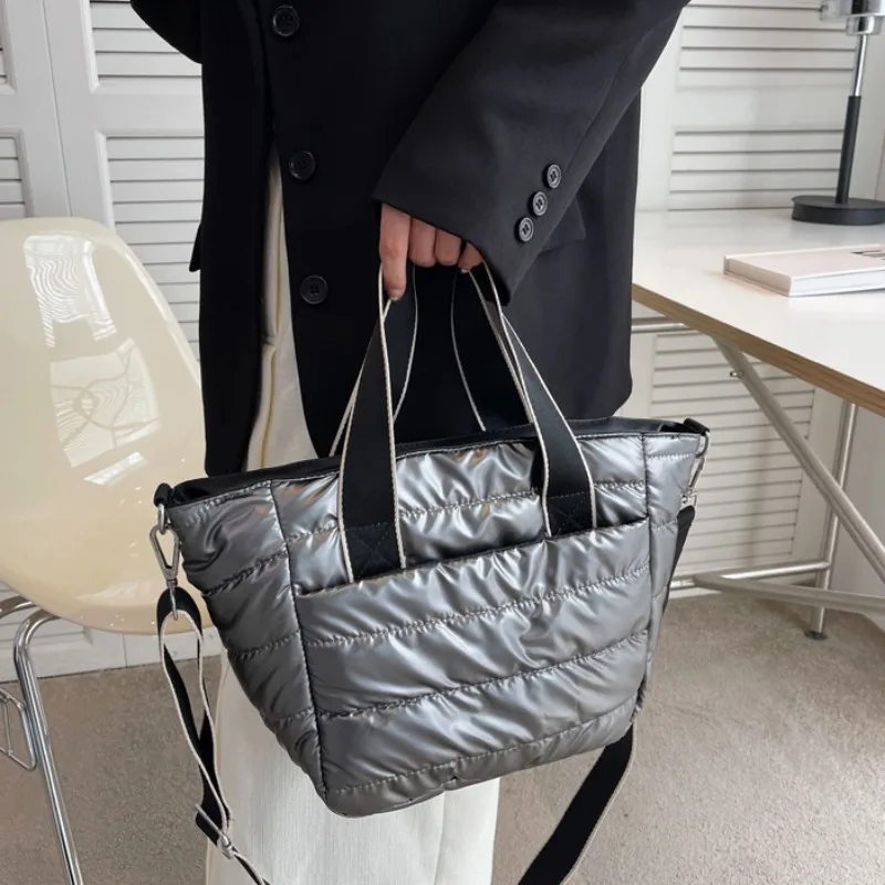Sac à Main Matelassé en Nylon et Coton Rembourré pour Femme, Sacoche Décontractée de Grande Capacité, Fourre-Tout d’Automne et d’Hiver