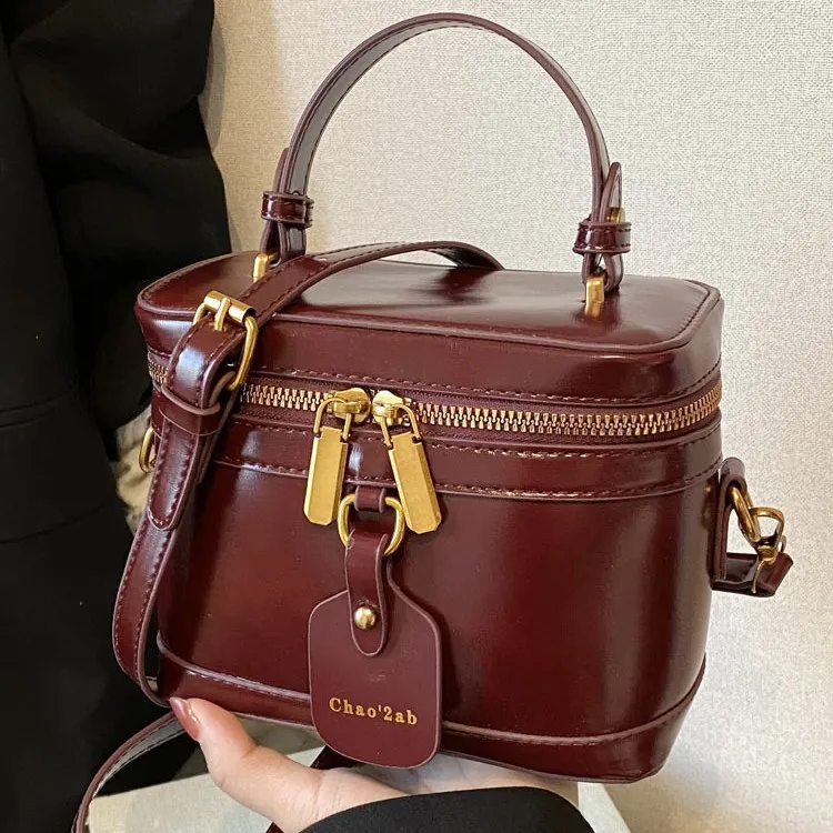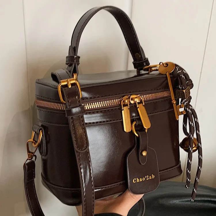 Sac à main rétro en cuir PU pour femme, sac à bandoulière, fourre-tout à l'huile, designer de luxe, E27 |