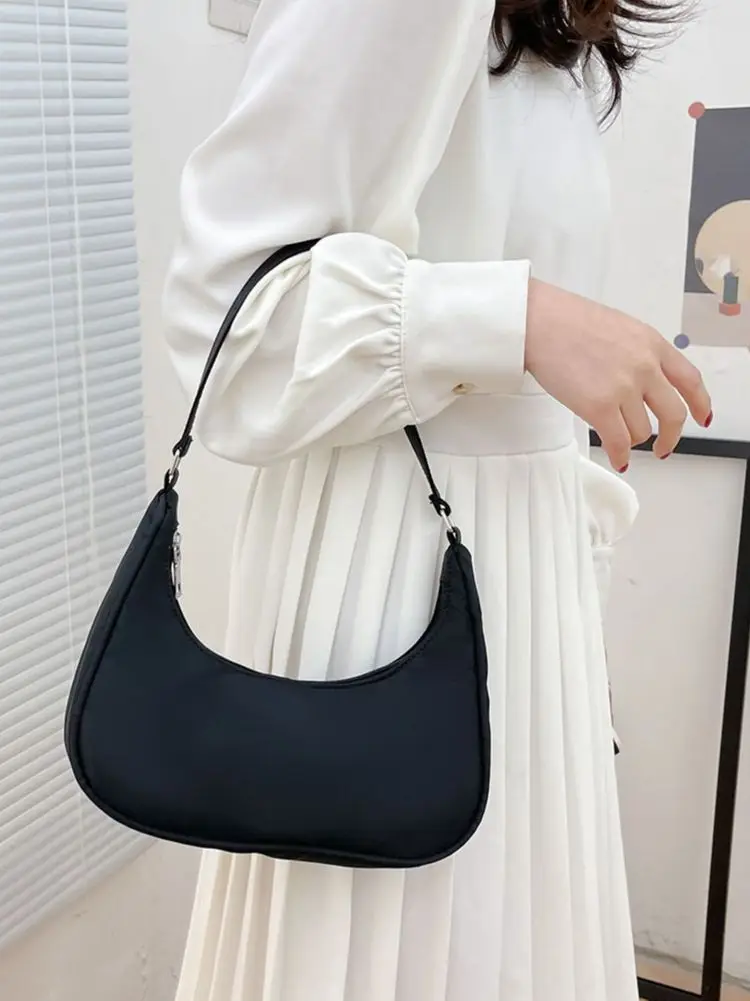 Main material: nylonSuitable for the crowd: womenNumber of shoulder straps: singleBag shape: crescent shapePattern: plainOccasion: daily, leisure, sho…
