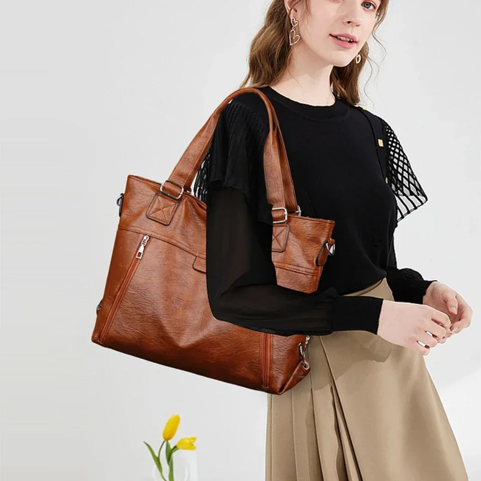 Sac à main rétro pour femmes, sac à bandoulière tendance, fourre-tout multicouche, sac à bandoulière de grande capacité |