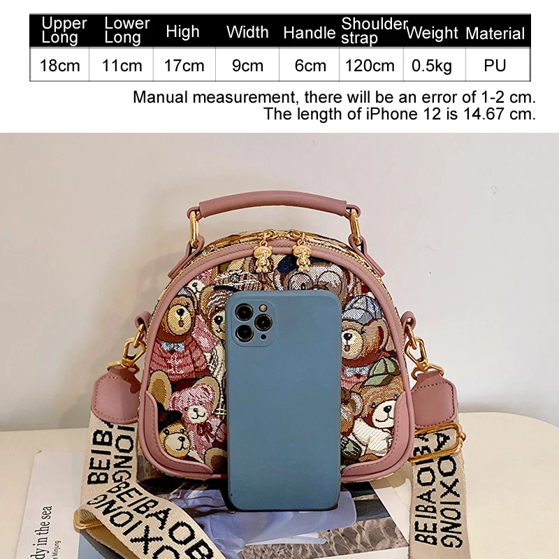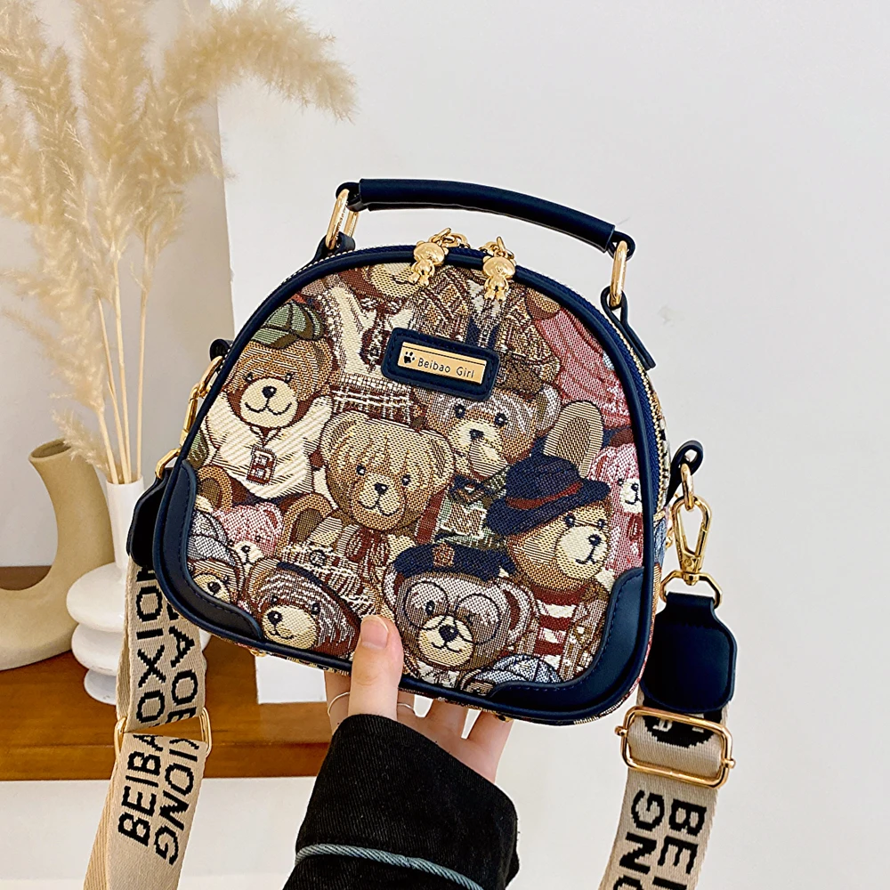 Sac à main rond tendance pour filles et femmes, sac à bandoulière circulaire, mode ours Jacquard, sacoche pour dames, 2023 |