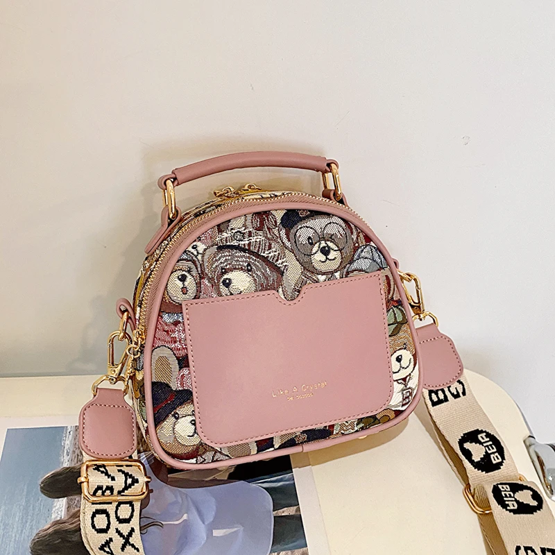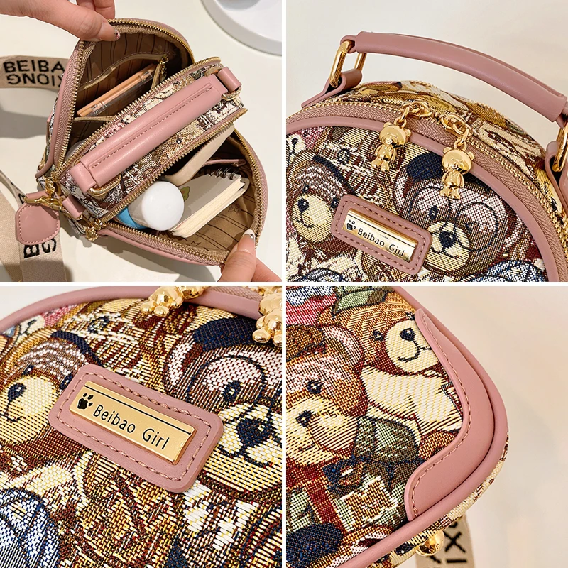 Sac à main rond tendance pour filles et femmes, sac à bandoulière circulaire, mode ours Jacquard, sacoche pour dames, 2023