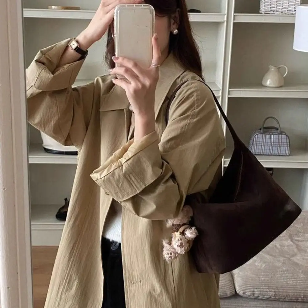 Sac à main Simple en daim, sac à bandoulière de grande capacité pour dames, sac Hobo de Style coréen de couleur unie pour filles
