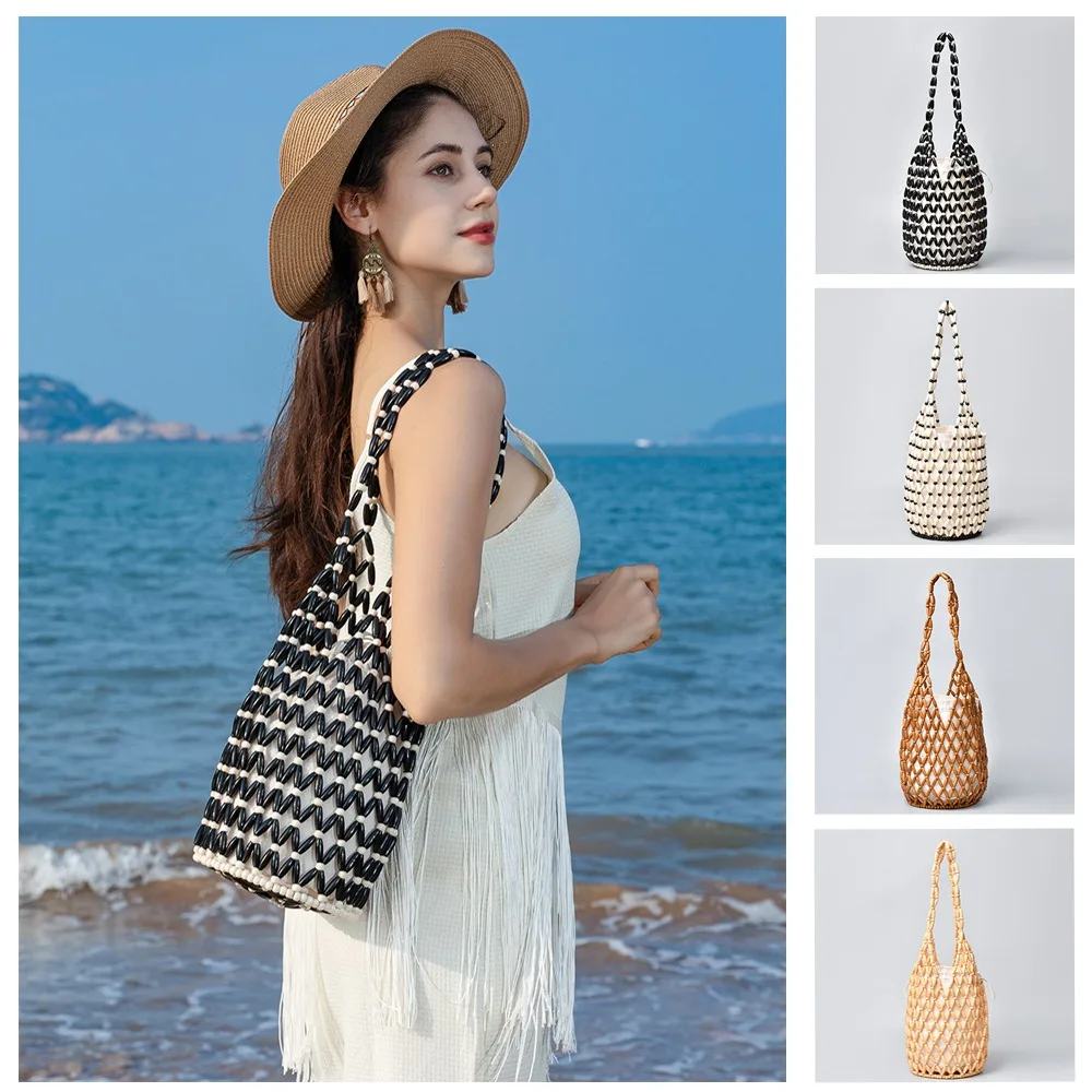Sac à main tissé bohème tendance pour femme, sac à main ajouré fait à la main, Design exquis, sac à main de plage d'été, saison d'été |