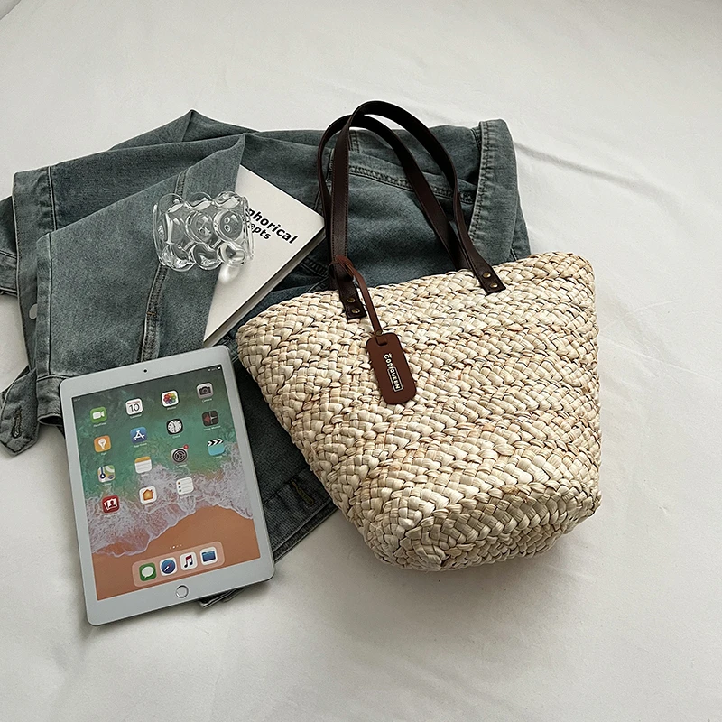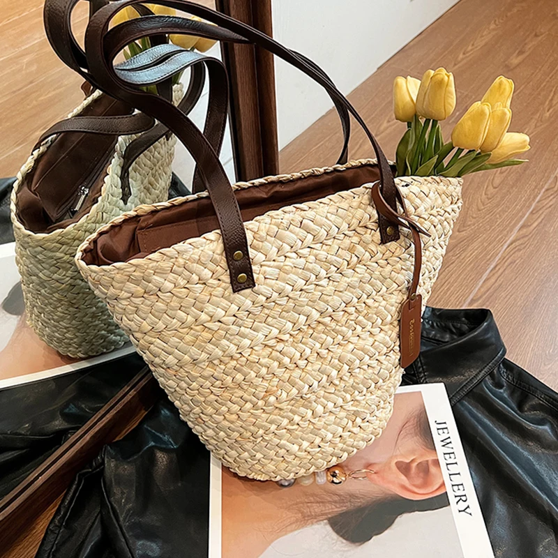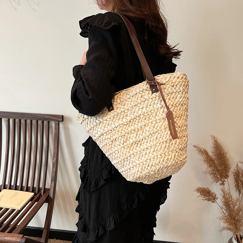 Sac à main tissé en rotin pour femmes, sac de plage de grande capacité, sac à main en paille, grand panier shopper, fourre-tout, sac fait main Boho, nouveau design, 2024 |