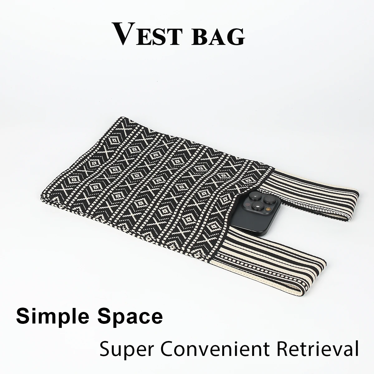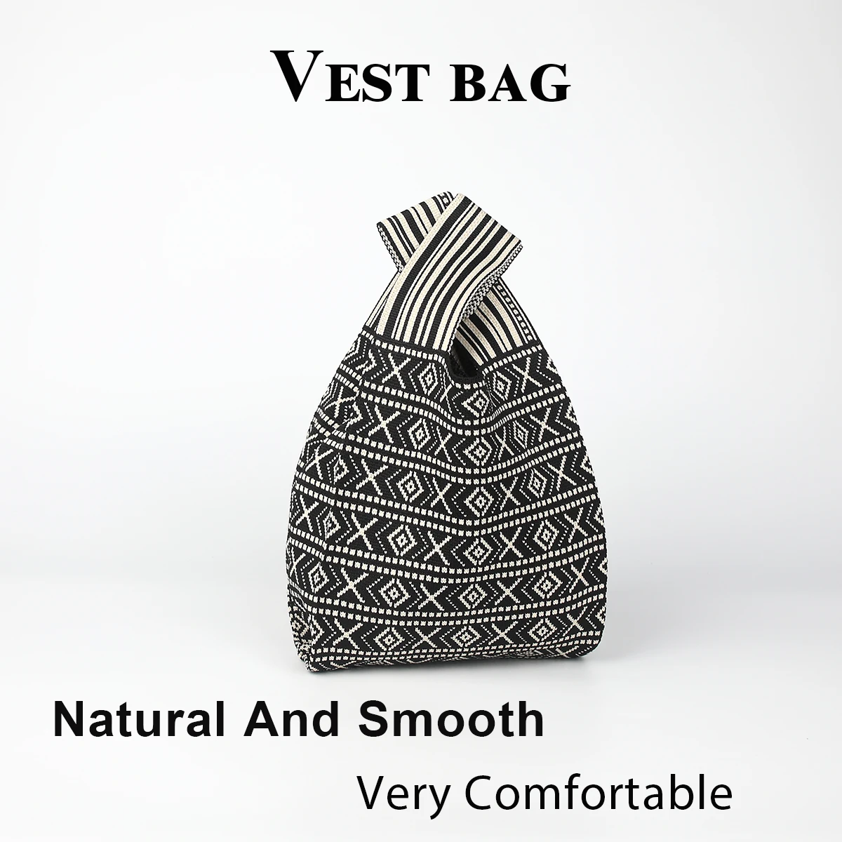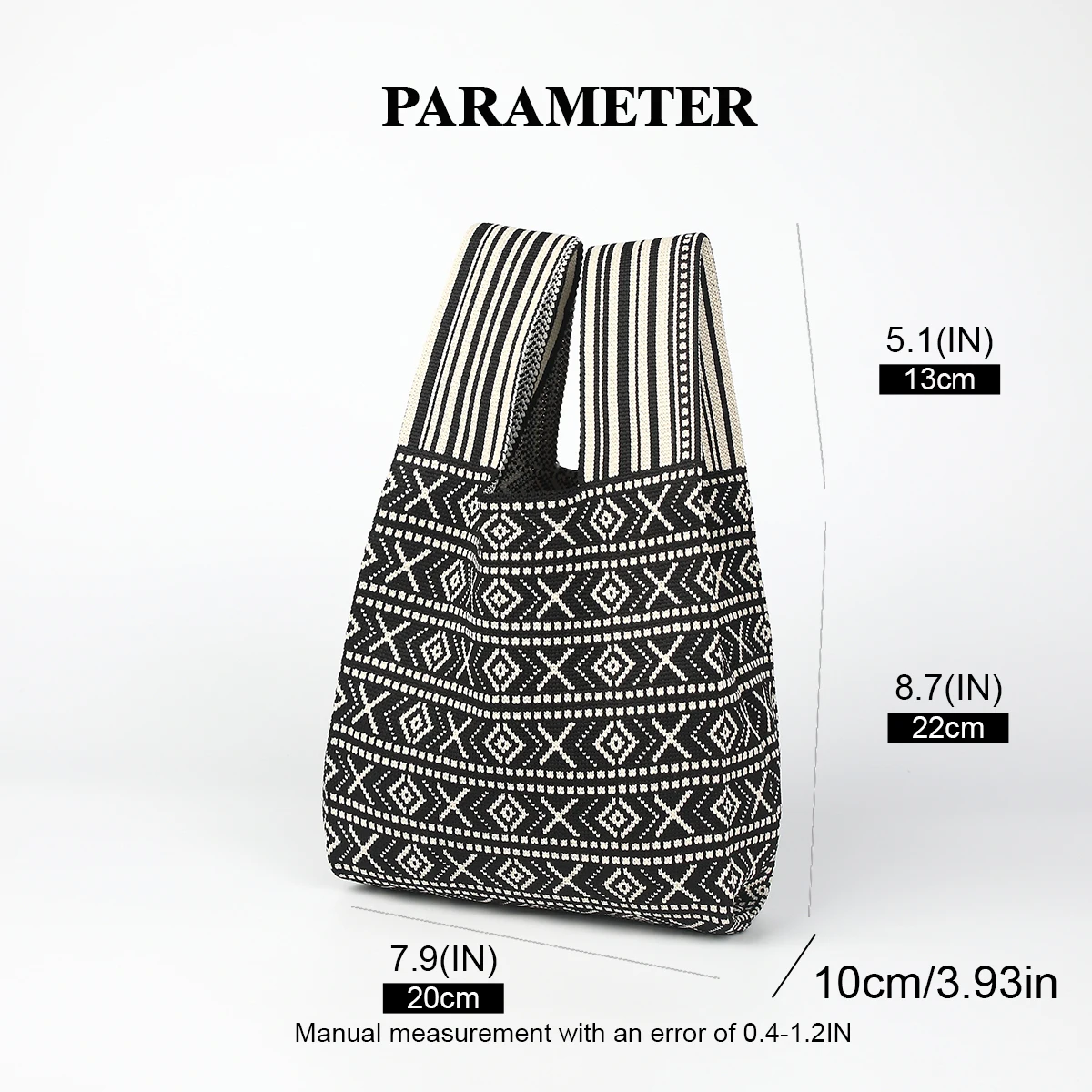 Sac à main tricoté avec lignes de style bohème et design de couleurs contrastées, tissu pliable et durable, adapté à toutes saisons, convient aux téléphones mobiles, clés, cosmétiques rouge à lèvres, bouteilles d’eau, choix parfait pour les vêtements de travail quotidiens, les voyages et les vacances, convient toutes les saisons