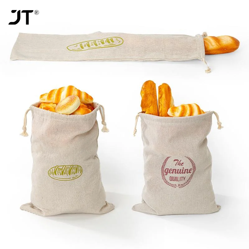 Sac à pain en lin réutilisable, Baguette en coton, sac de rangement à cordon de serrage, pain fait maison, frais, écologique, maintien pour Baguette