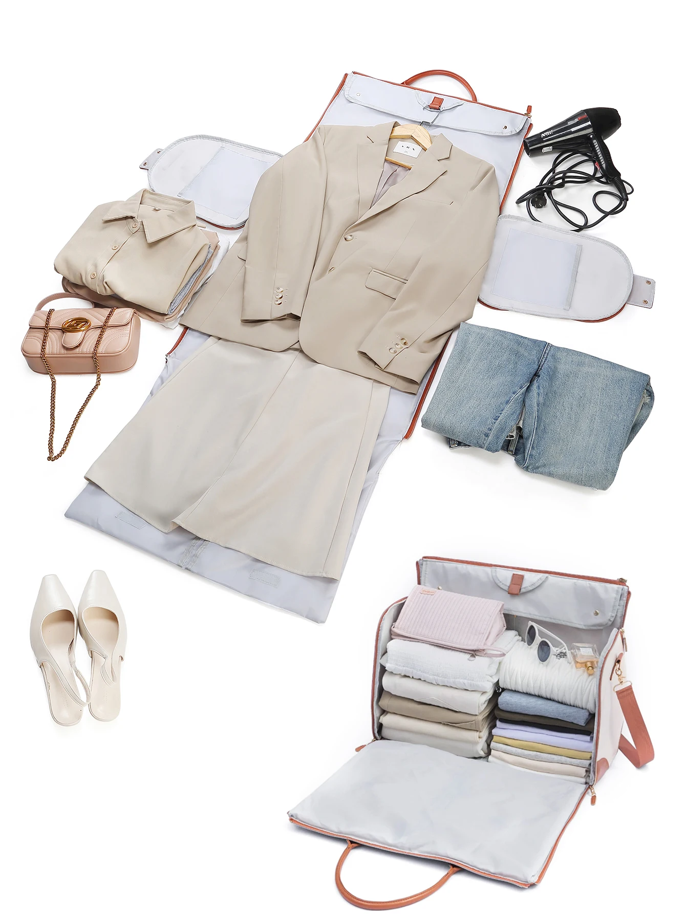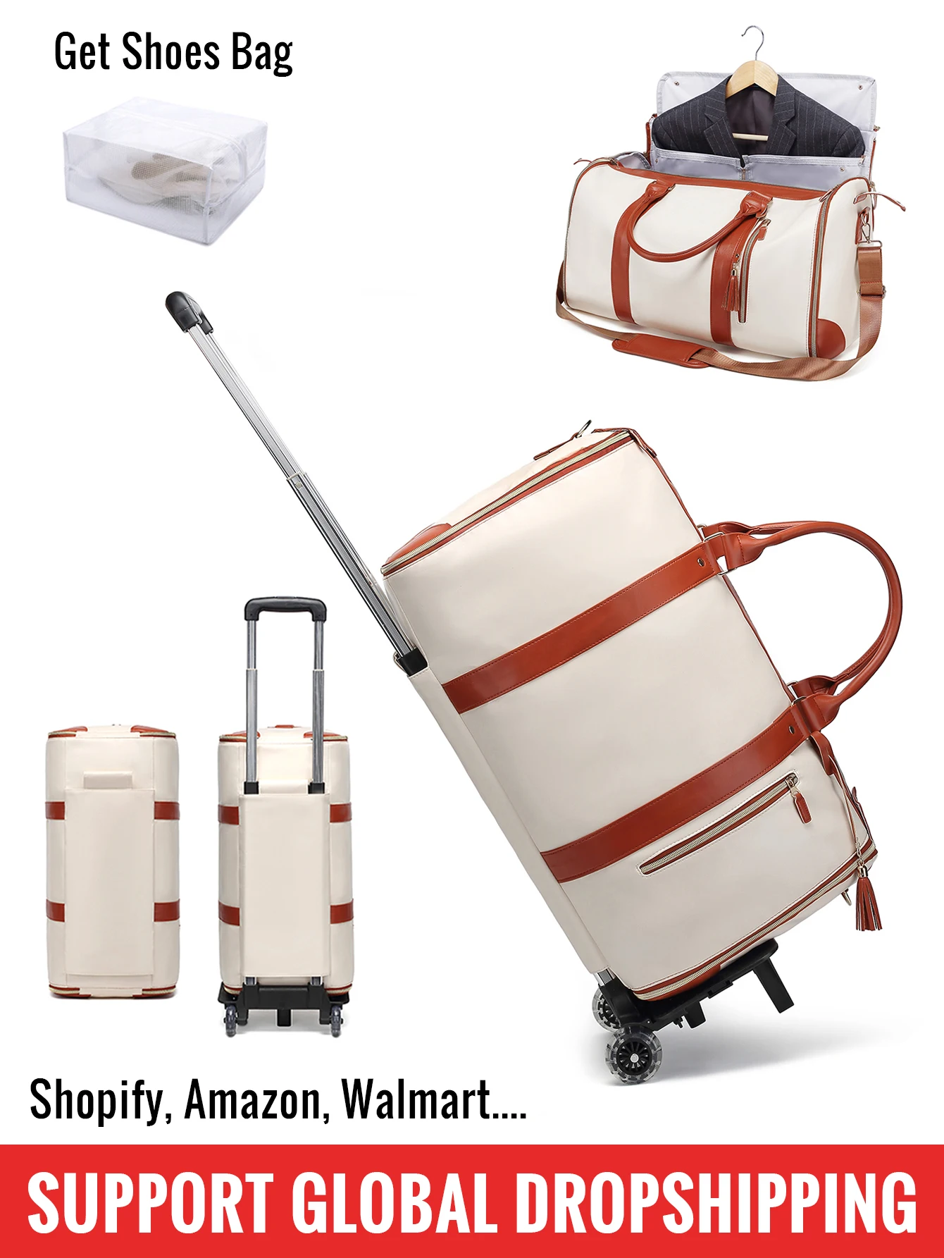 Sac à vêtements de voyage portable avec sac à chaussures et sangle de chariot, valise de week-end, bagage à main, livraison directe globale, 55L
