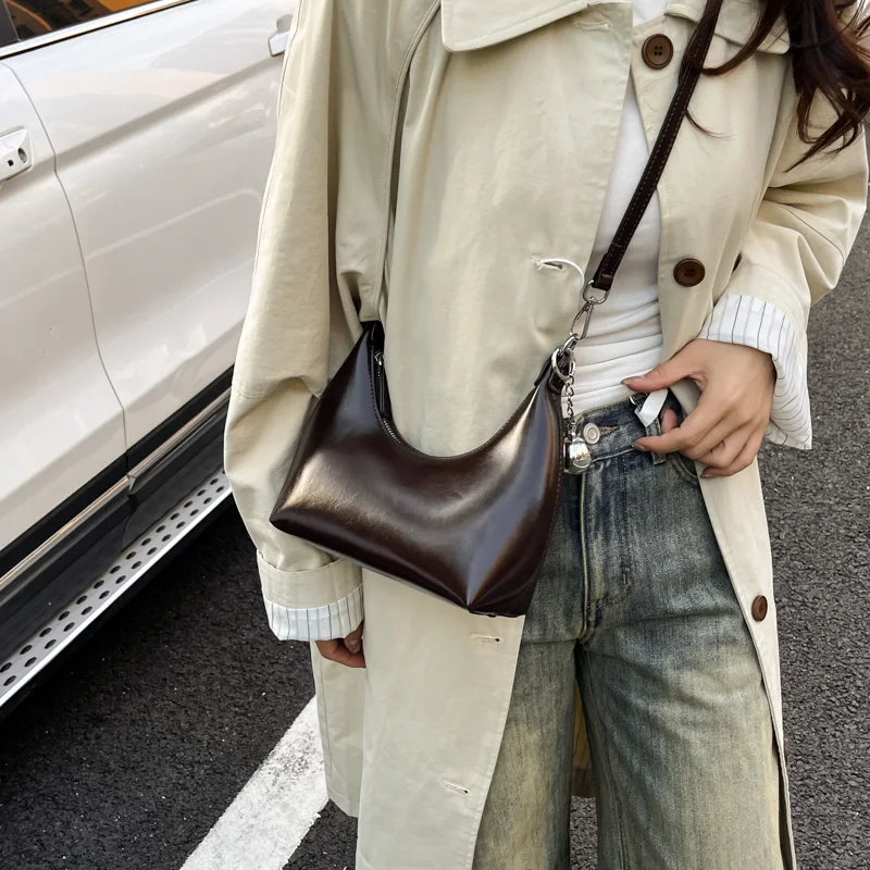 Sac Baguette d'inspiration rétro, sac à main Chic en cuir demi-lune structuré de styliste pour femmes, sac à main et à bandoulière multi-voies avec fermeture éclair |