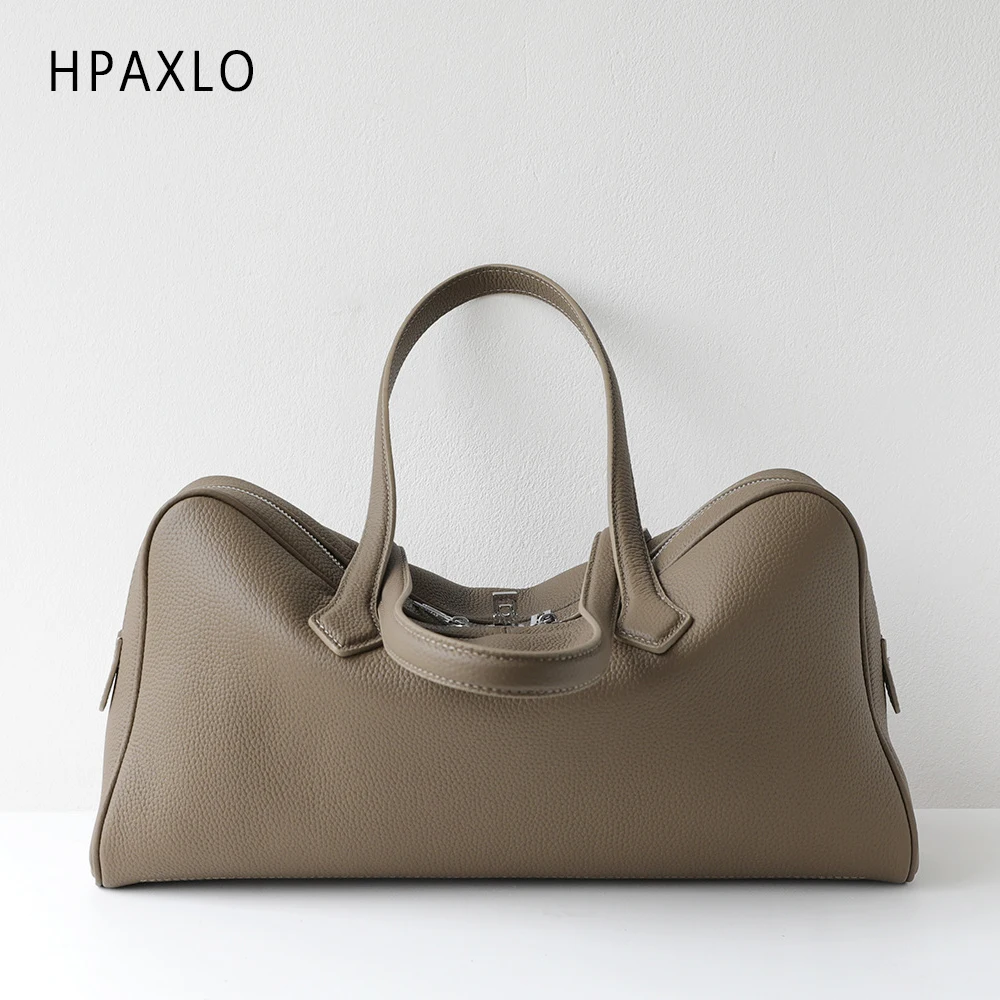 Sac Boston en cuir véritable pour femmes, sac à main à bandoulière polyvalent, fourre-tout de banlieue, accessoire de mode pour dames, sac à main de luxe, nouveau |