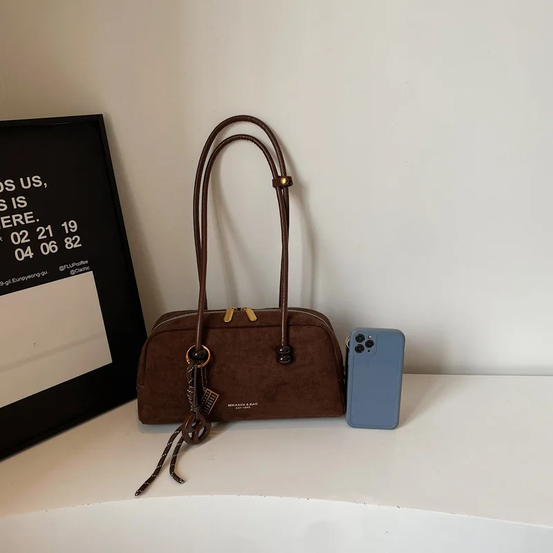 Sac Boston en daim de luxe pour femmes, sac à bandoulière de grande capacité, sac à main élégant pour le travail et les déplacements, nouvelle collection 2025 |
