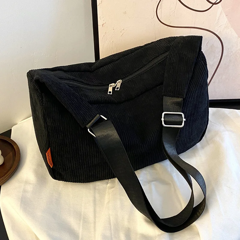 "J'ai acheté ce sac en velours côtelé pour mes déplacements et je suis vraiment ravi(e) de mon achat ! C'est un sac très pratique et polyvalent, parfait pour le shopping, les sorties entre amis ou les petits weekends. La couleur unie est très élégante et se marie avec tout. Le bandoulière est confortable et ajustable, ce qui est très pratique quand on marche beaucoup. Seul bémol, le tissu se froisse un peu après quelques utilisations, mais rien de très gênant. Dans l'ensemble, c'est un sac de très bonne qualité, à la fois tendance et fonctionnel, que je recommande vivement !"