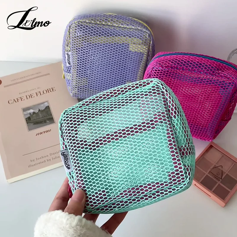 Sac cosmétique carré en maille, sac de rangement polyvalent pour articles divers, sac de rangement cosmétique carré Portable avec fermeture éclair |