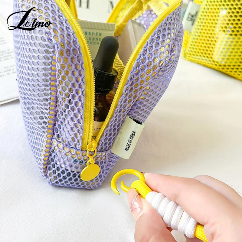 Sac cosmétique carré en maille, sac de rangement polyvalent pour articles divers, sac de rangement cosmétique carré Portable avec fermeture éclair