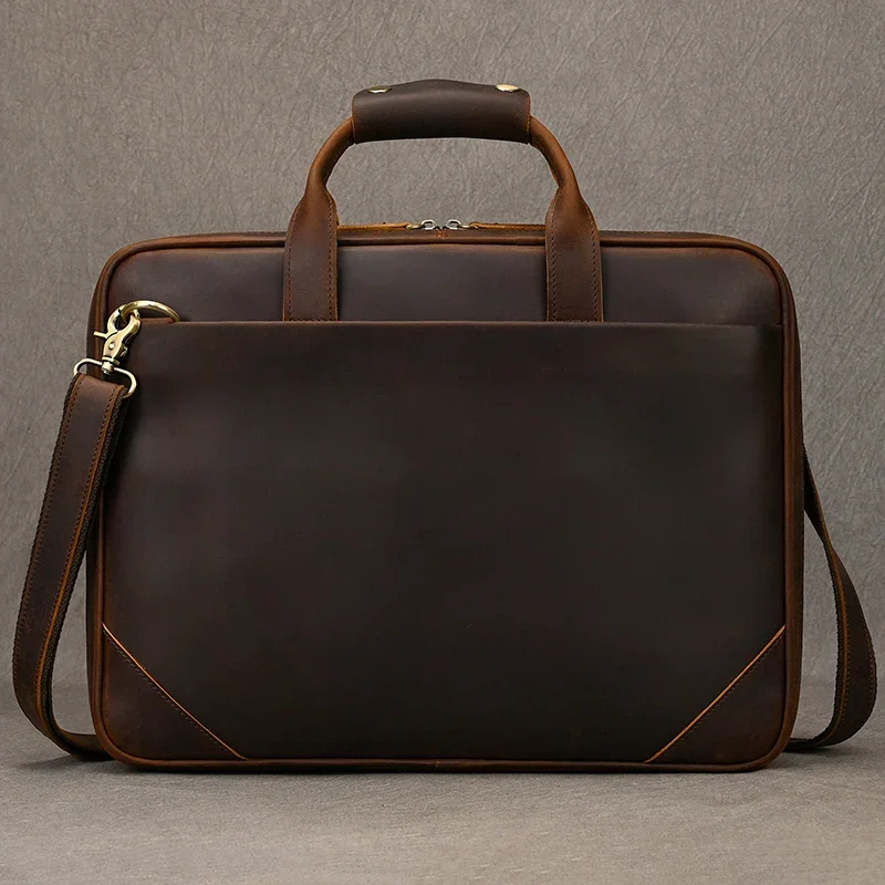 Sac de banlieue d’affaires en cuir pour hommes, porte-documents en cuir de vache, sac à main rétro mode, sac à bandoulière pour documents A4, pochette d’ordinateur