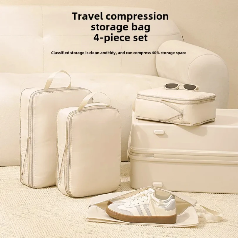 Sac de Cubes d’emballage à Compression de voyage, valise Portable, organisateurs de vêtements, étuis de rangement de bagages étanches, sacs à tiroirs 4 pièces/ensemble