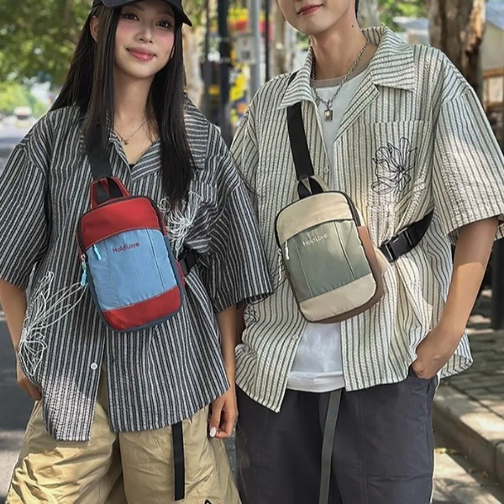Sac de poitrine carré pour hommes, sac à bandoulière de sport de Style coréen avec fermeture éclair, grande capacité d’épissure de couleur, sac à bandoulière en Nylon pour hommes/femmes