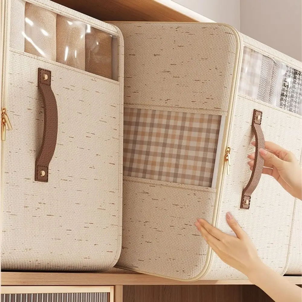 Sac de rangement pour vêtements et couettes visibles, pliable, anti-poussière, conteneur à fermeture éclair, grande capacité avec couvercle, sacs de couette pour couverture |