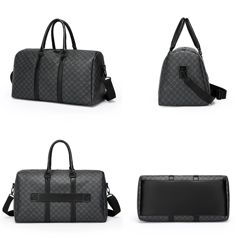 Sac de voyage noir pour hommes, sac de voyage d’affaires de grande capacité, sac à main classique imprimé complet, sacs à bandoulière pour hommes