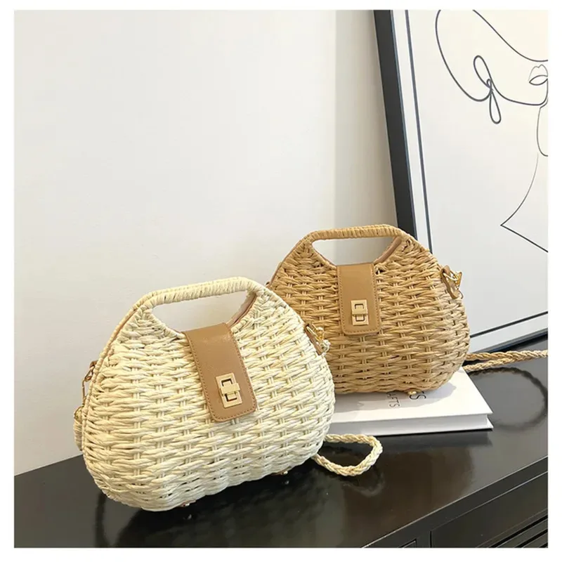 Sac en rotin tissé en paille pour femmes, élégant, mode, sac en rotin, corde de paille, sac à bandoulière, sac de plage |
