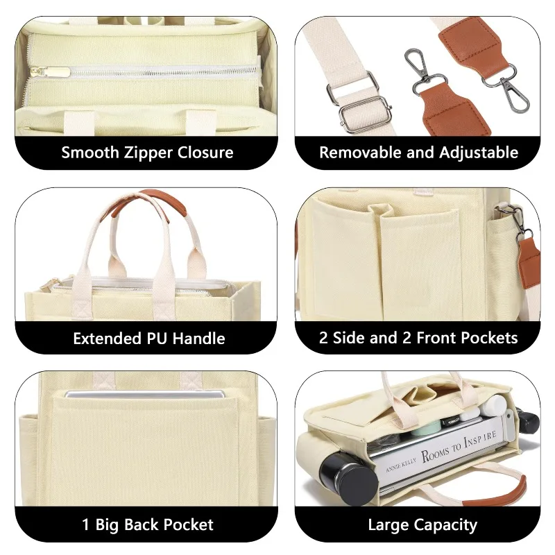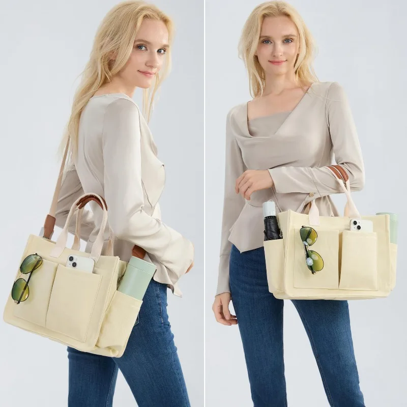 Sac fourre-tout pour femmes avec compartiments grands fourre-tout en toile sac à main pour femme sacs à bandoulière travail ordinateur portable livre sac sacs à main à bandoulière