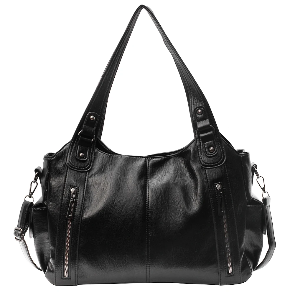 Sac fourre-tout pour femmes avec multi-poches, sacoche en cuir PU avec fermeture éclair, sac à main rétro tendance pour le travail et les voyages