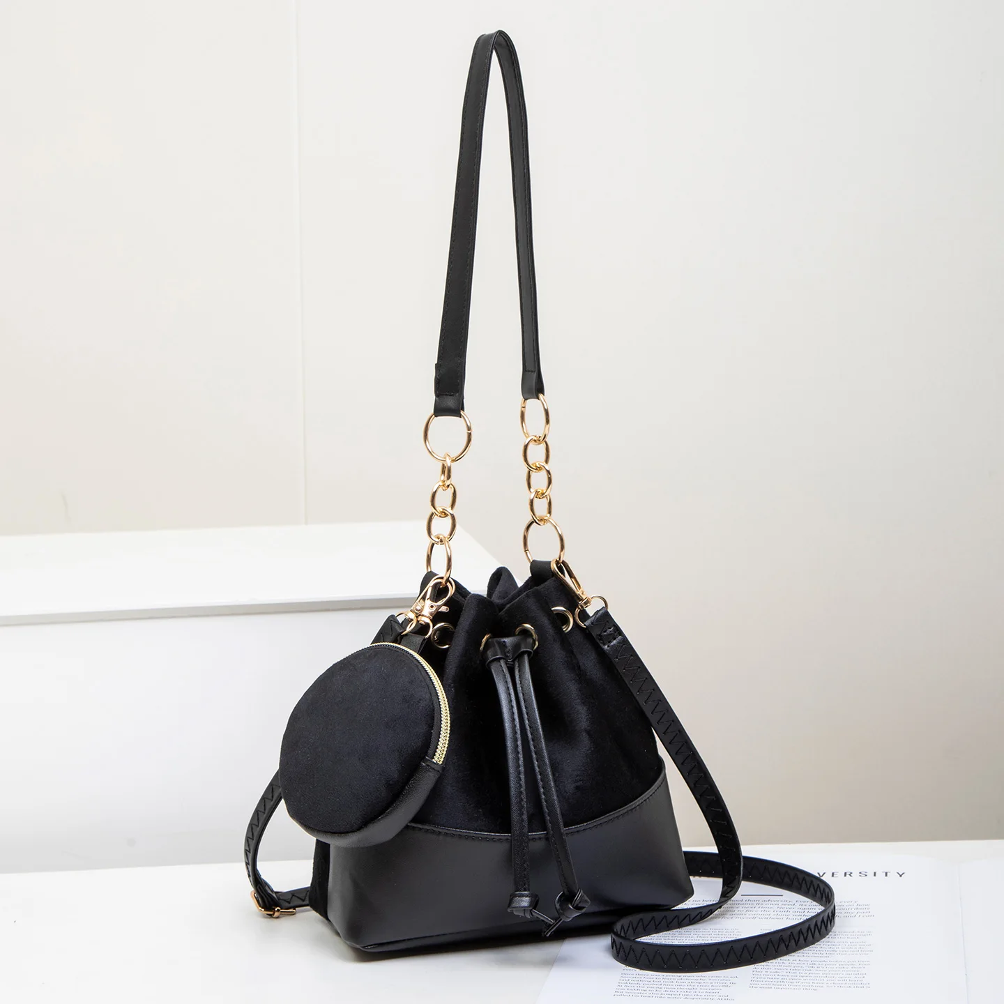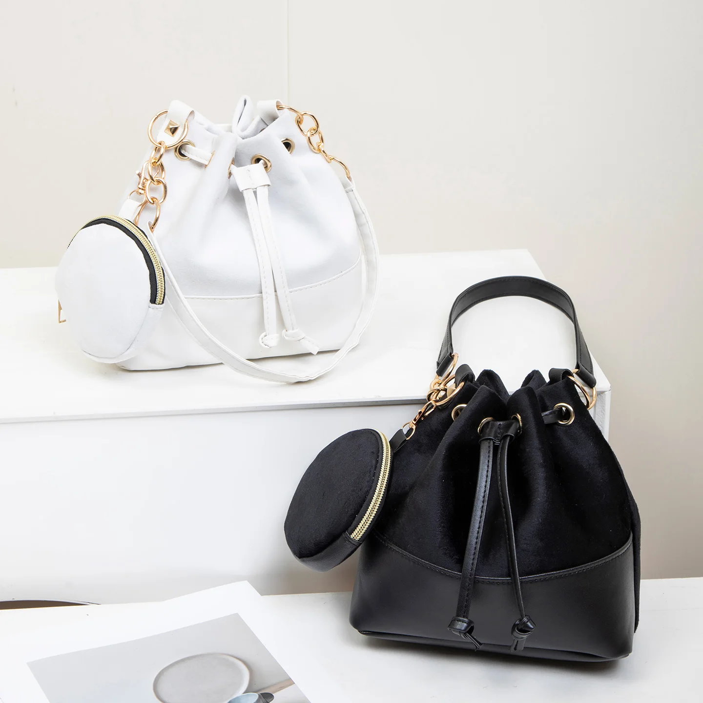 Sac seau polyvalent et tendance en 2 pièces de couleur unie, sac à main à bandoulière élégant pour femmes |