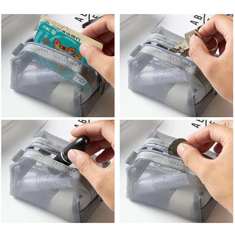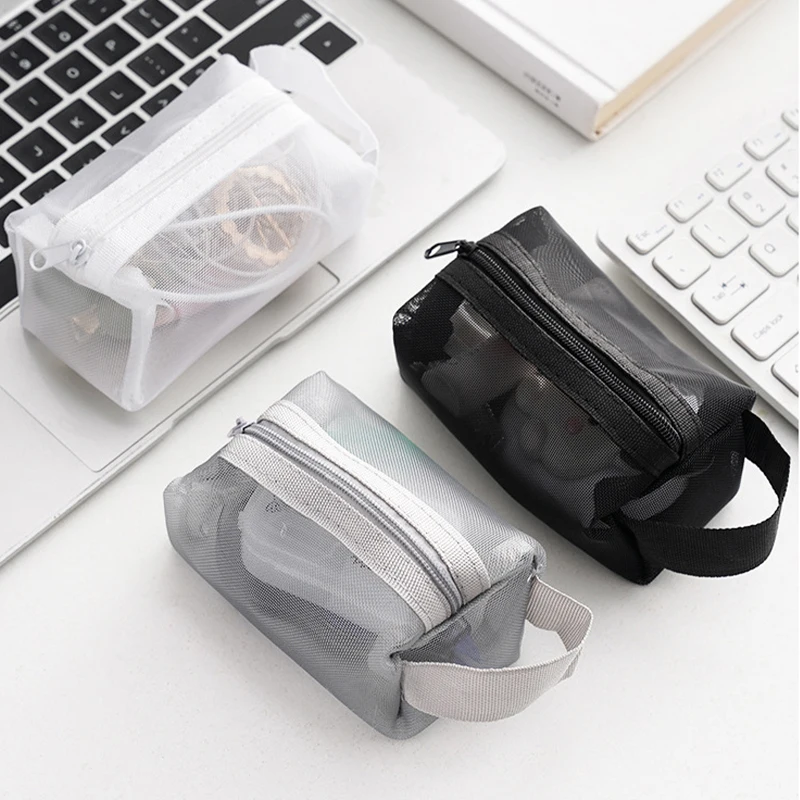 Sacs à clés de grande capacité, sac à cosmétiques Transparent, pochette de rangement carrée en maille, Mini porte-monnaie à fermeture éclair, Mini sac de lavage, étui de papeterie