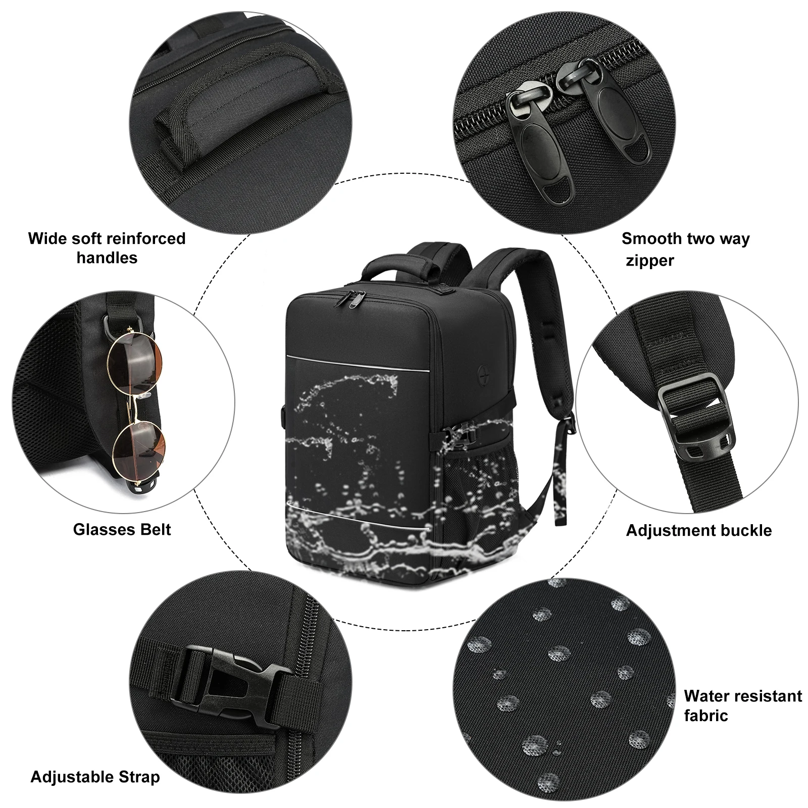 Sacs à dos de voyage 40x20x25, sac de cabine ryanair, valise à main unisexe, sac à dos pour ordinateur portable de 15.6 pouces pour l’école, bande réfléchissante de nuit