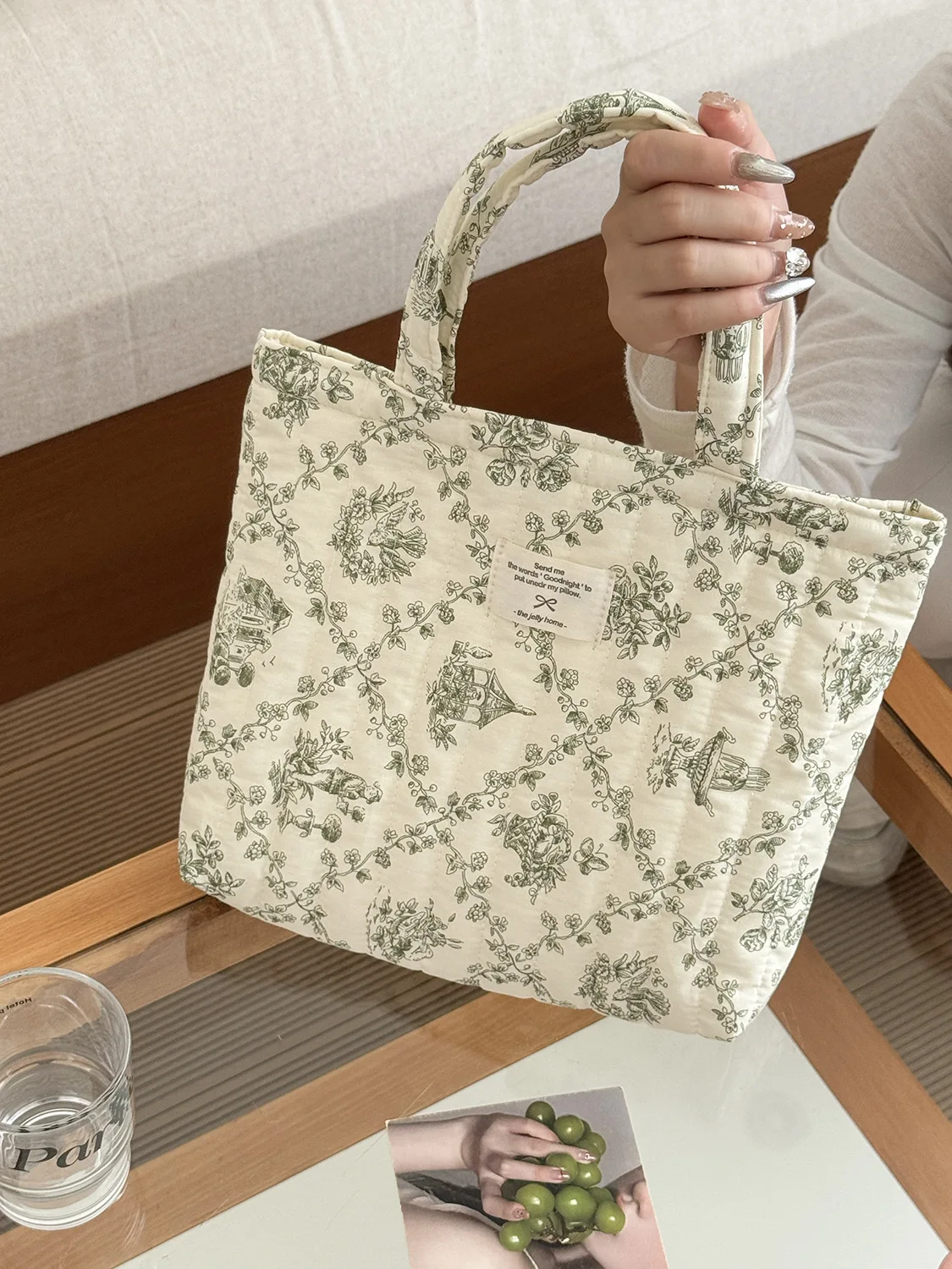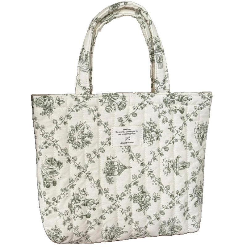 Sacs à main en coton matelassé pour femmes, jolis sacs à fleurs portables pour dames, petits fourre-tout à bandoulière Design rétro décontracté, sac à Bento pour déjeuner