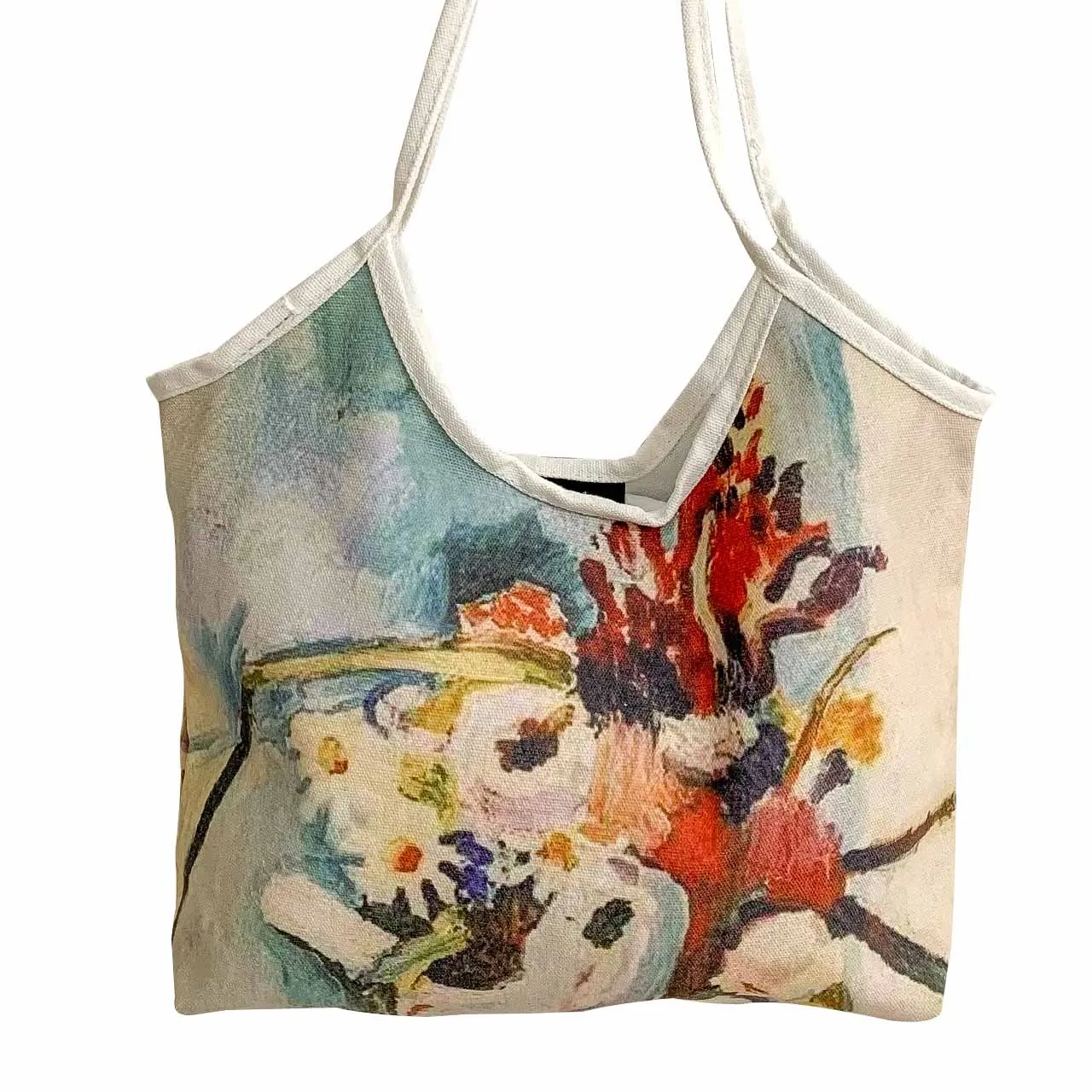 Sacs à main peinture à l'huile toile sac nouveau à la mode grande capacité épaule décontracté mode Simple boucle magnétique sac à main fourre-tout sacs |