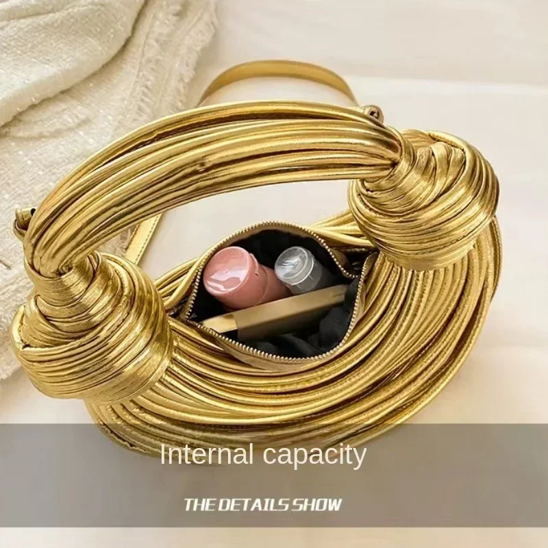 Sacs à main pour femmes 2025 nouveau or marque de luxe de créateur sacs à nouilles tissés à la main corde nouée tiré Hobo argent pochette de soirée Chic