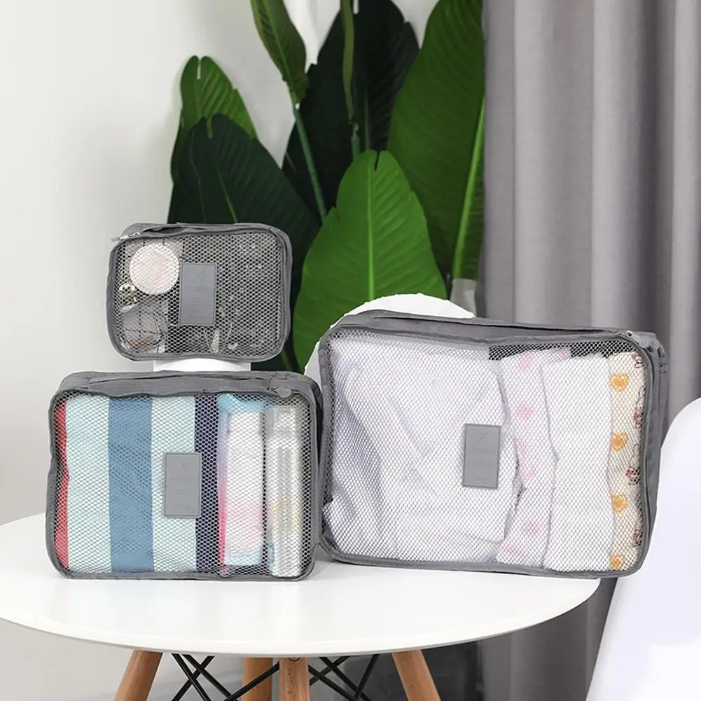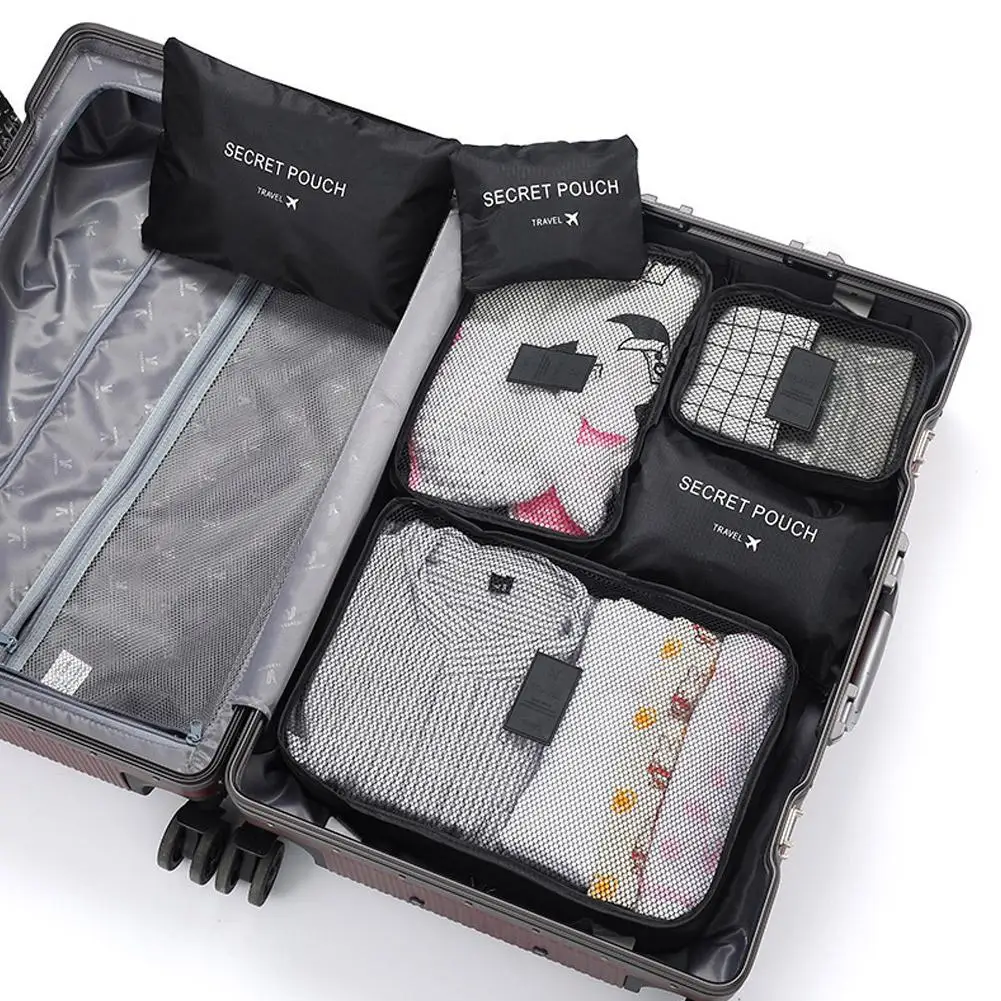 Sacs de rangement pour vêtements de voyage, 6 pièces/ensemble, organisateur de bagages Portable, Cubes d’emballage de valise avec pochette à chaussures