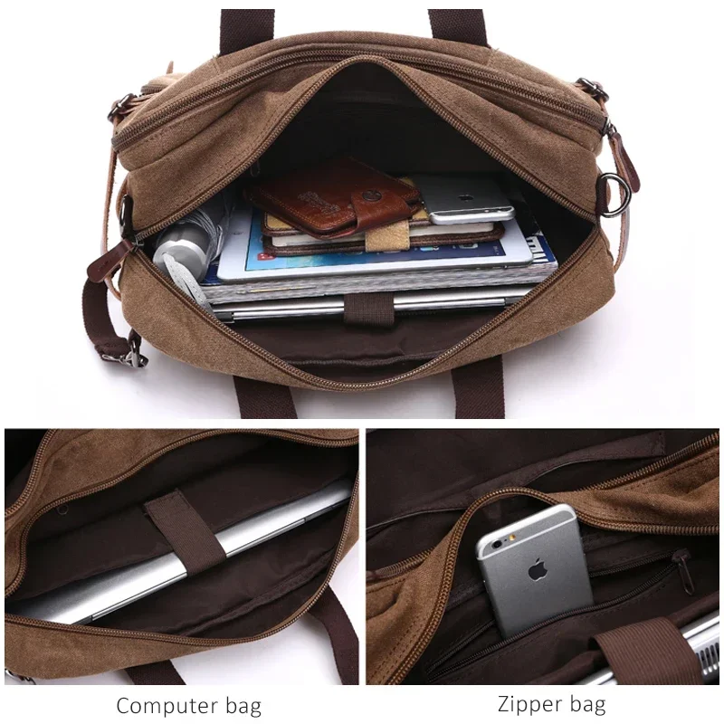 Sacs de voyage en toile pour hommes, étui à bombes, valise classique, messager initié, fourre-tout, grands sacs à main d’affaires décontractés, poche pour ordinateur portable
