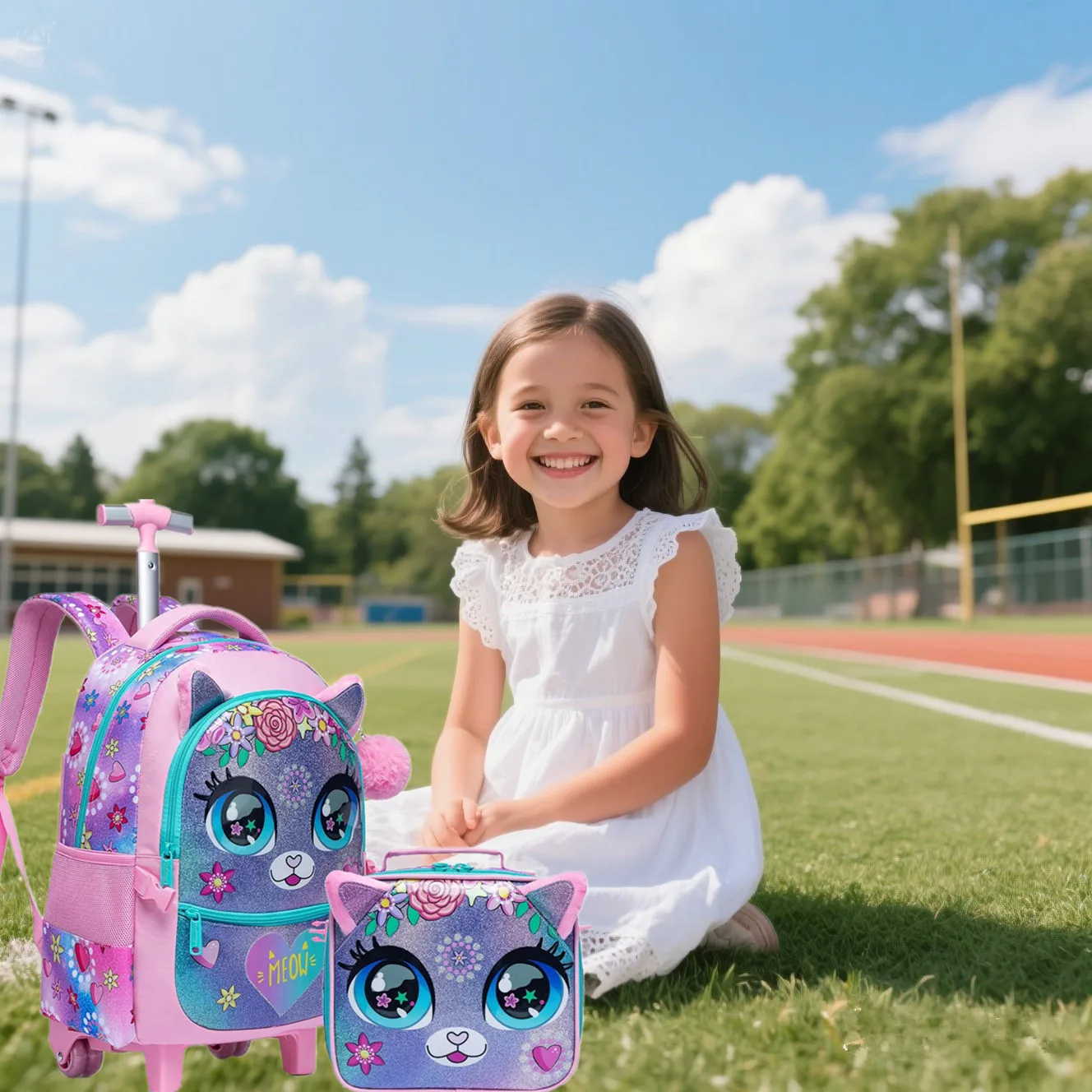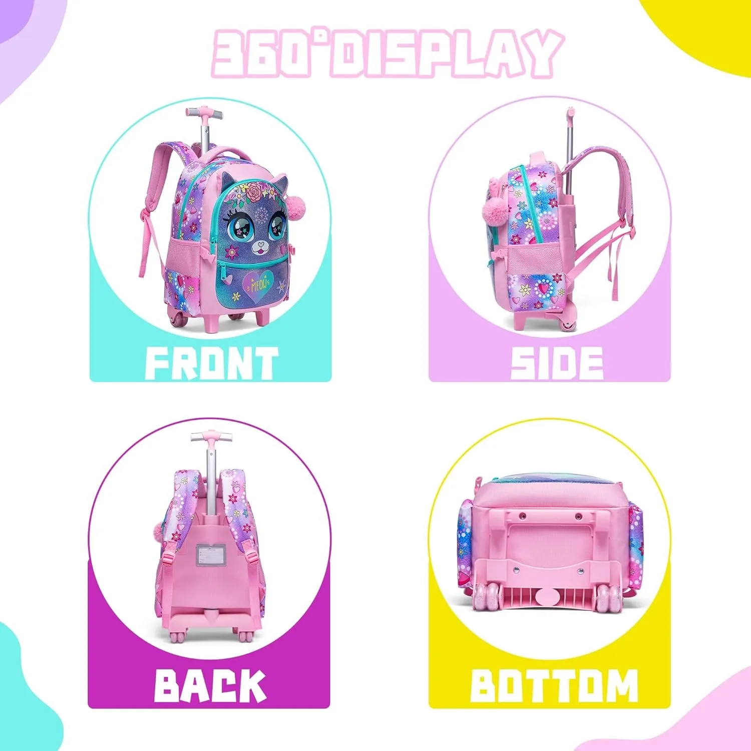 - Feature 8: children’s backpack school girl wheel