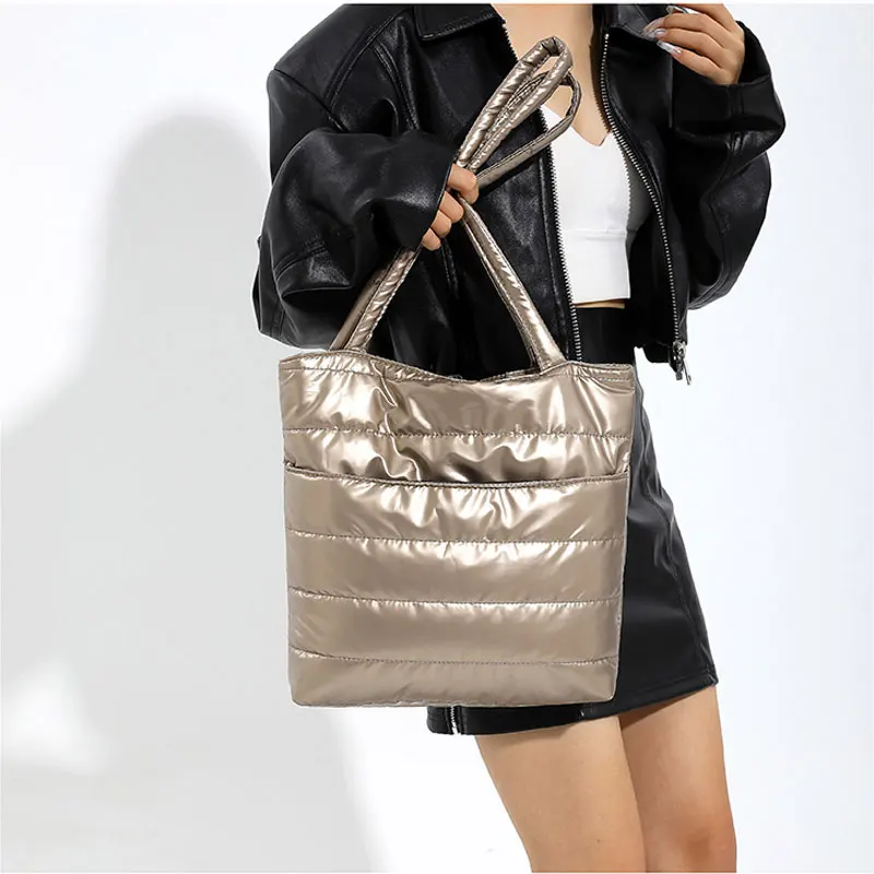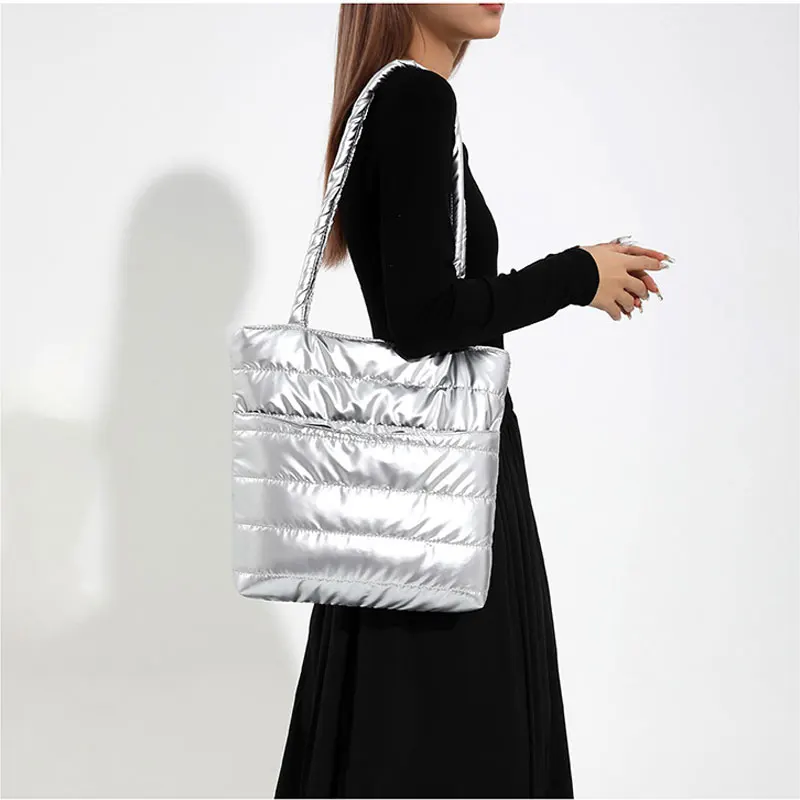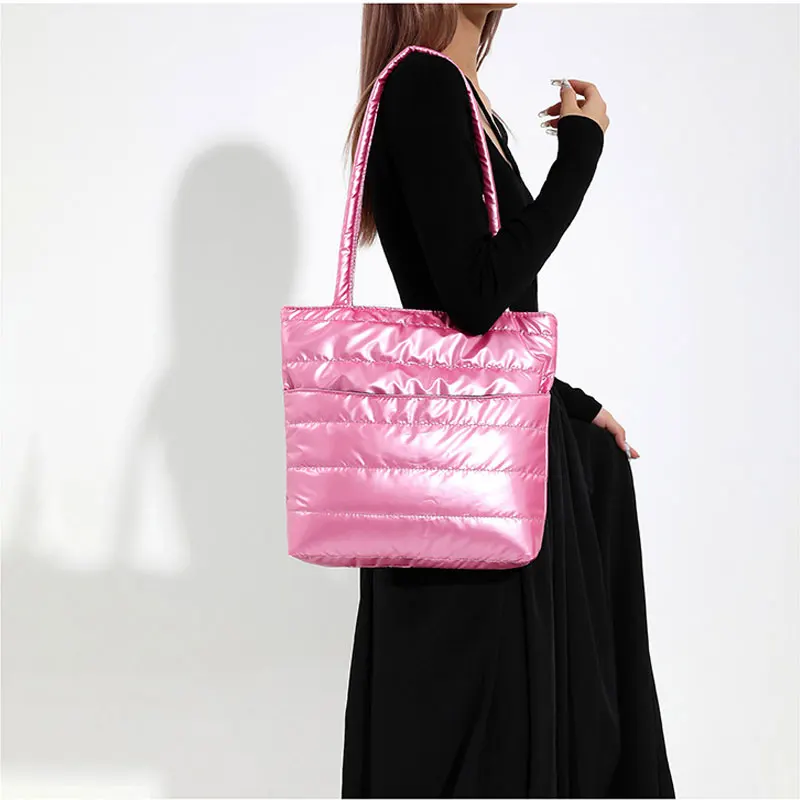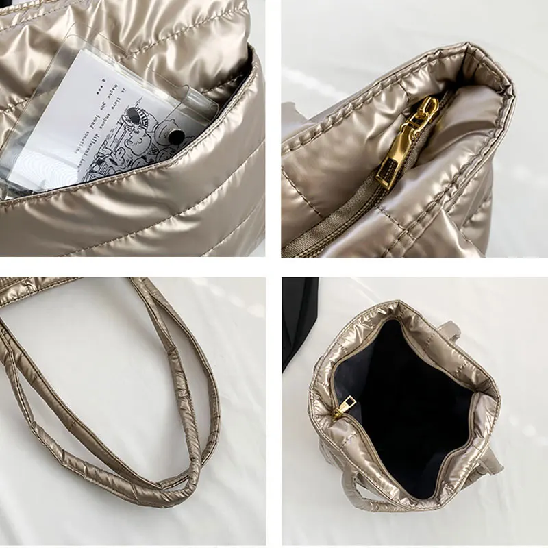 • feature 1: Women’s Bags Winter Down Handbags Cotton-padded Mobile Space Glossy Female Polyester Shoulder Handbag Cheap Bolsas Para Mujeres