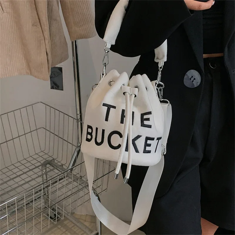 Sacs seau en peluche pour femmes, sac à main de luxe de styliste, mode lettre imprimée, haute qualité, mignon, sac à bandoulière, nouvelle collection 2025