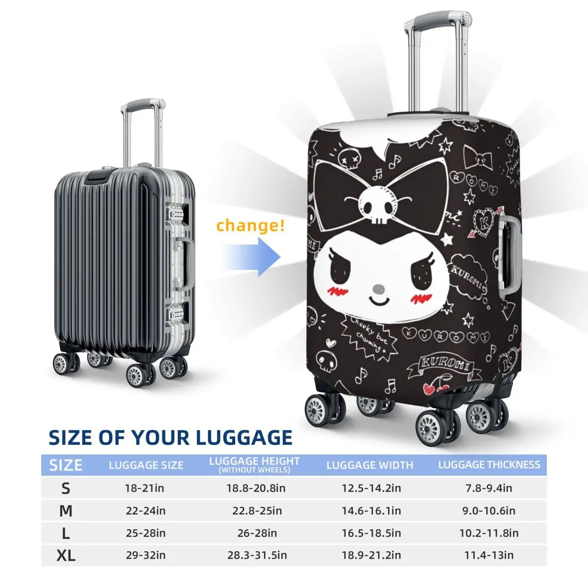 Sanurgente Kuromi-Juste de valise de voyage, dessin animé, vacances, utile, drôle, fournitures de bagages, protecteur, Japon