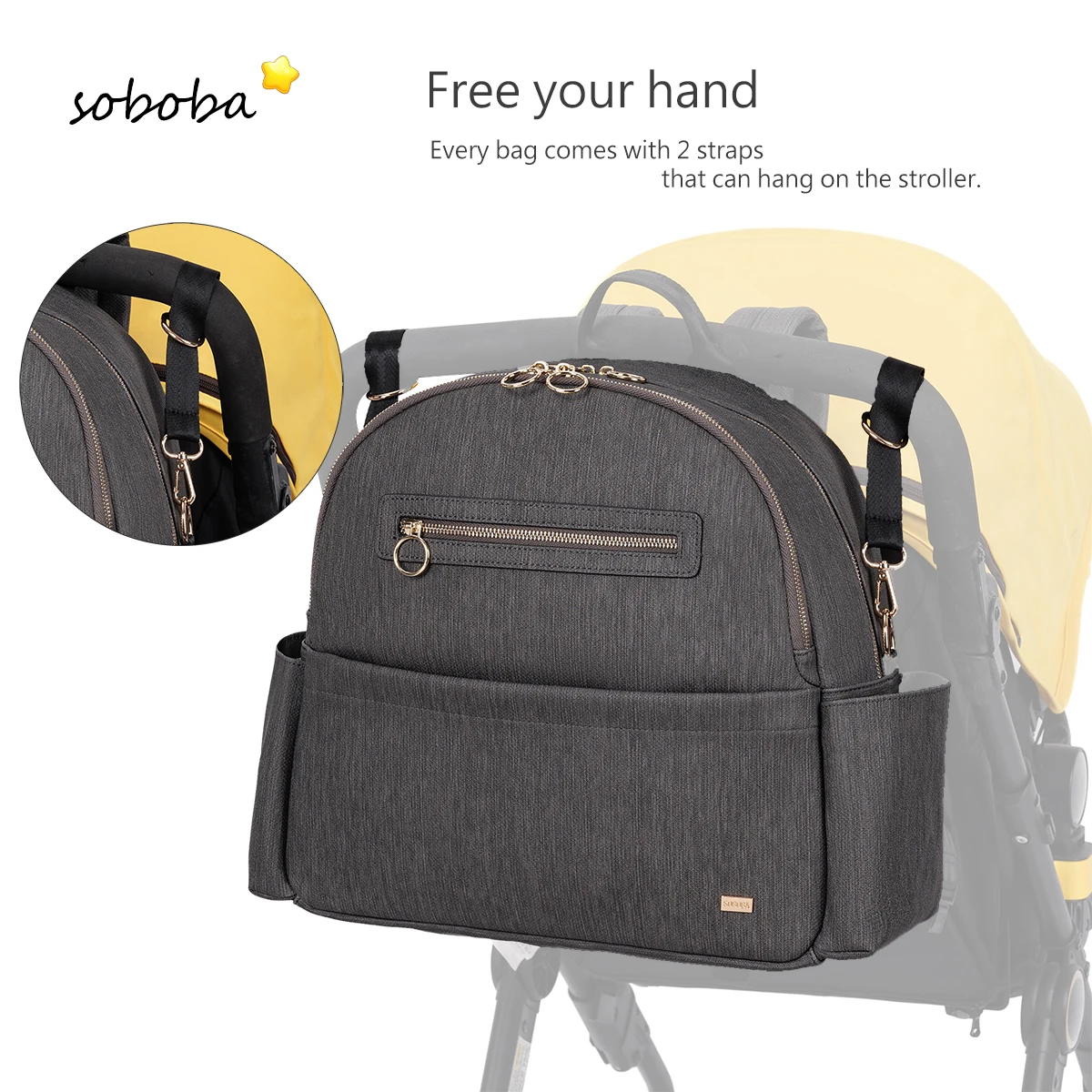 Soboba sac à couches étanche pour nouveau-né bébé avec étui à sucette grande capacité sac à dos de voyage à langer lisse