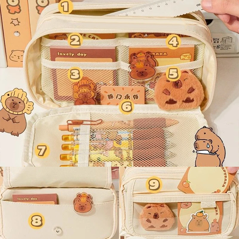Trousse à crayons en tissu mignon Kawaii, grande capacité, Capybara, fermeture éclair, sac pour enfants, pochette pour stylos, fournitures scolaires, cadeau