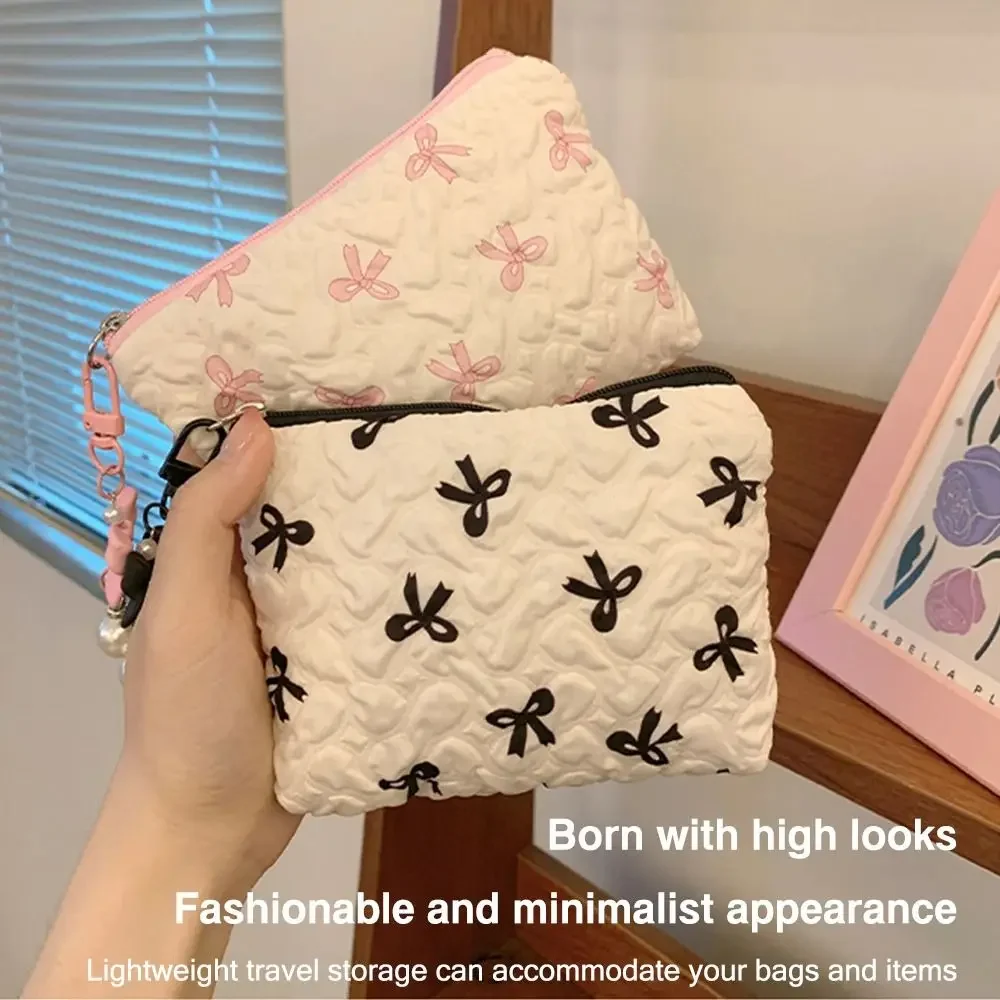 Trousse cosmétique à nœud plissé pour femmes, trousse de maquillage en coton pour filles, poudres de maquillage portables Little Bow, trousse de maquillage de voyage matelassurera